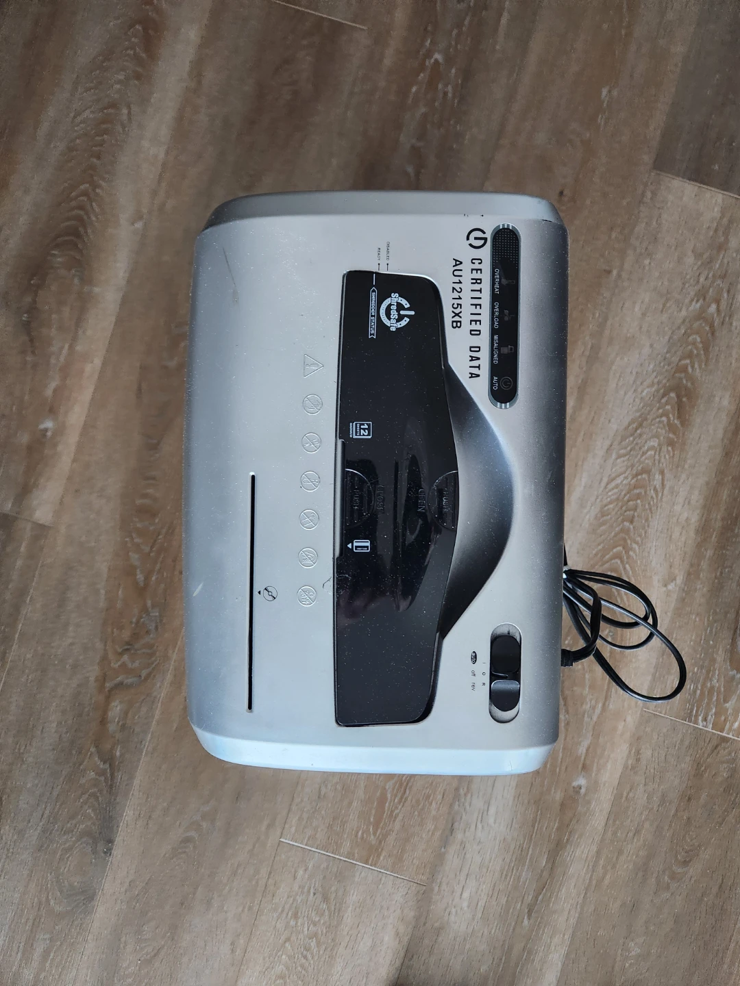 Certified Data AU715XB . Paper, credit cards, cds. Cross shreds. Works fine, can be demonstrated upon pick up. Cash only