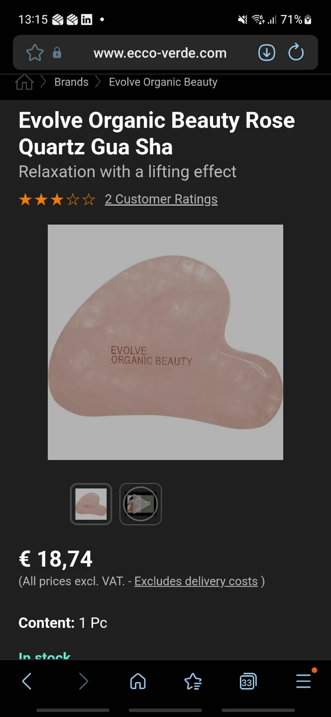 Selling a Rose Quartz Gua Sha by Evolve Organic Beauty. The Gua Sha is great for relaxation and is said to have a lifting effect. Originally for €18.74 Euros.