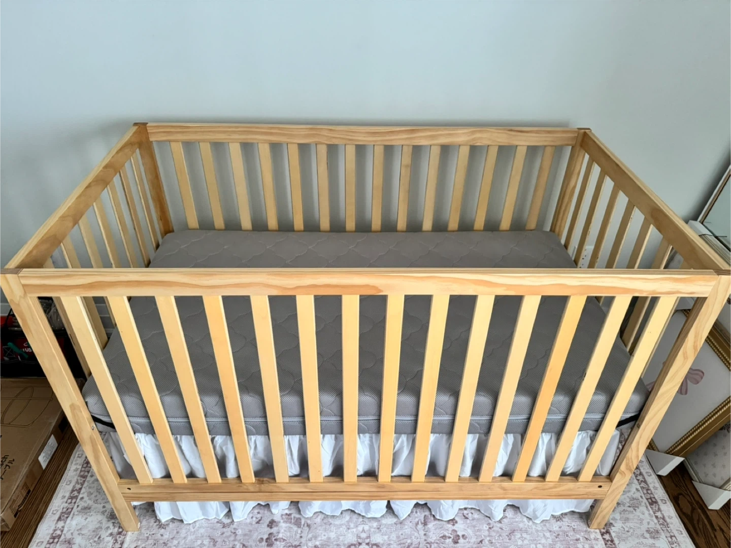 Selling a sturdy wooden baby crib. It's in great shape and ready for a new little one! Never used assembled it only to realize I didn’t like the colour with my dresser