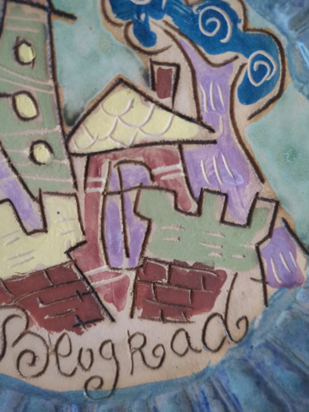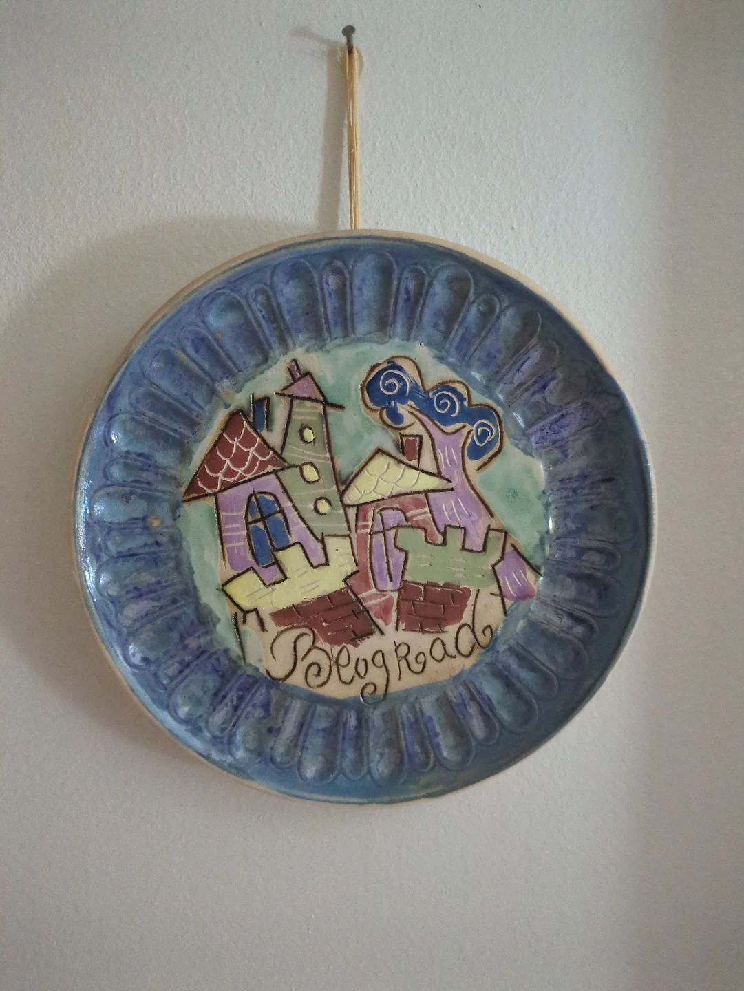 Selling a unique handmade 7 inch decorative plate featuring a colourful illustration of Beograd (Belgrade). It's a charming piece that would add a touch of character to any room
