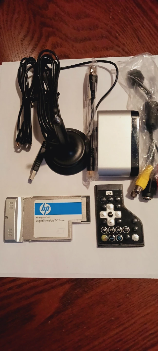 New !!! HP Hewlett Packard HP ExpressCard Digital/Analog TV Tuner. Includes the tuner card, remote, antenna, and necessary cables. Great for turning your laptop into a TV! NEW !! ALL MY PRICES ARE NEGOTIABLE !!