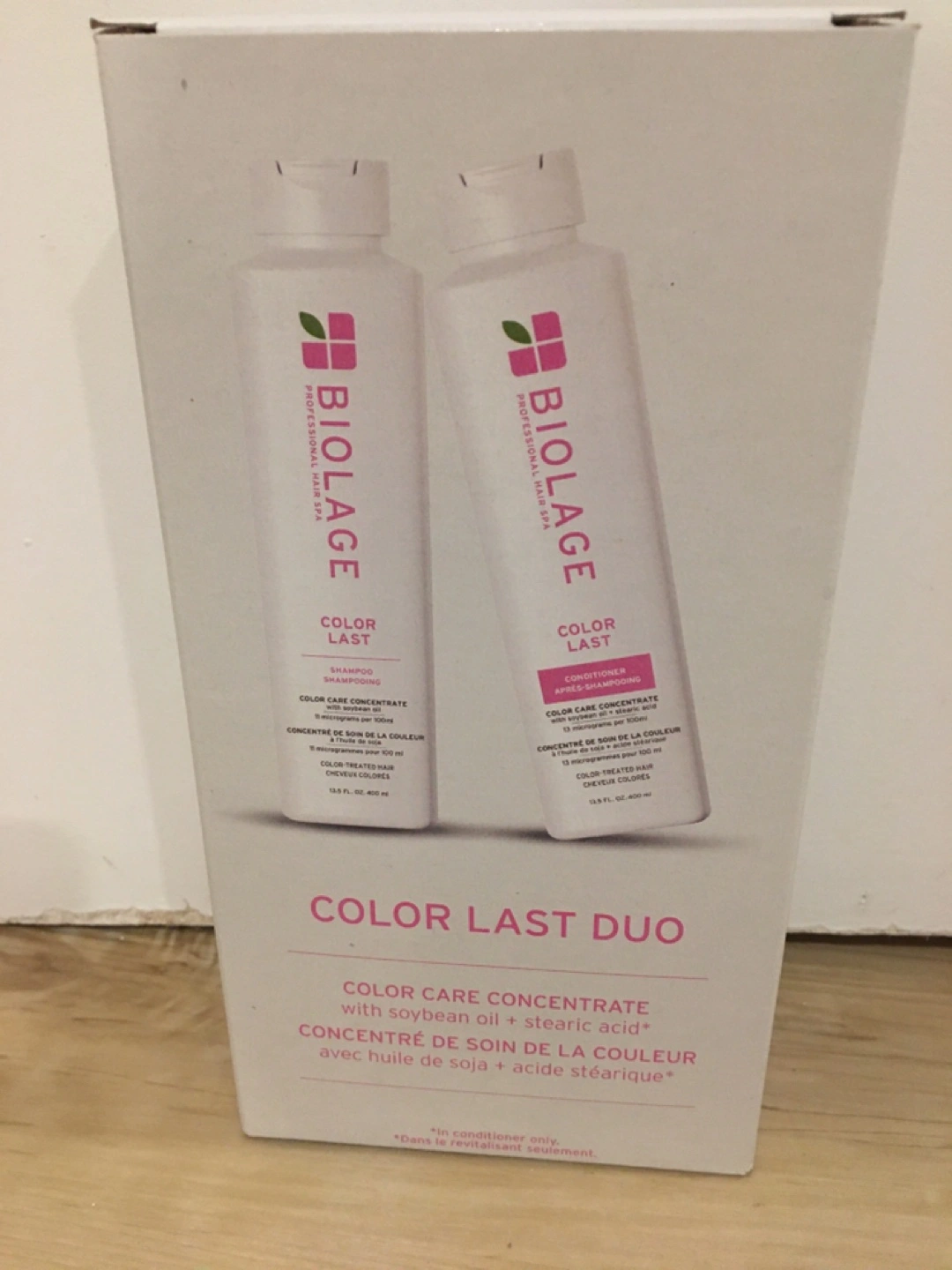 Selling a Biolage Colorlast duo set! It includes both the shampoo and conditioner. These are designed to help keep your colour-treated hair looking vibrant and healthy.