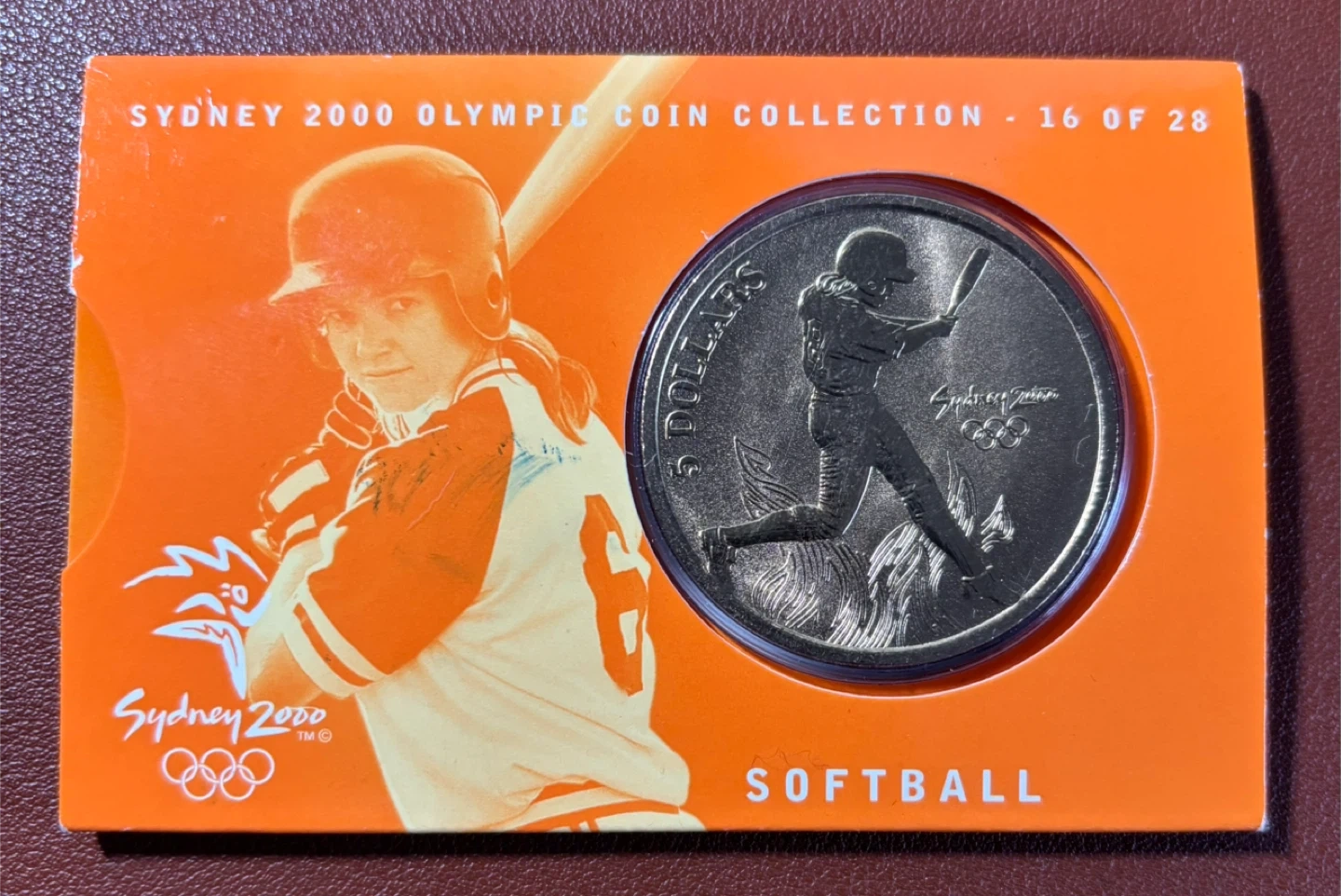 Selling a commemorative coin from the Sydney 2000 Olympic Games collection. This $5 coin is part of a collection of 28 coins representing sports of the Sydney 2000 Olympic Games. It is No.16 depicting the Softball event. The coin is made of Al-Zn-Bronze and weighs 20 grams. It's in great condition!