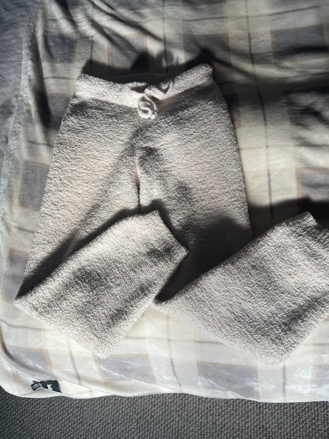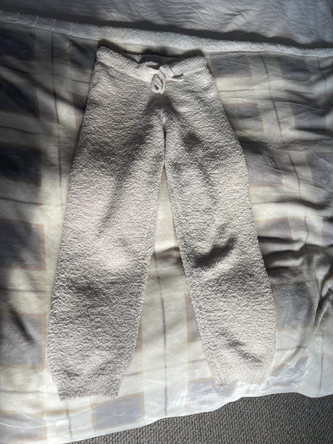 Selling a pair of Cozy Pants in cream colour . They are super soft and comfortable, perfect for lounging around the house! The material is a cozy knit, making them ideal for cooler weather