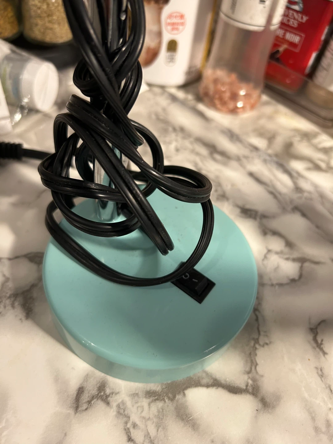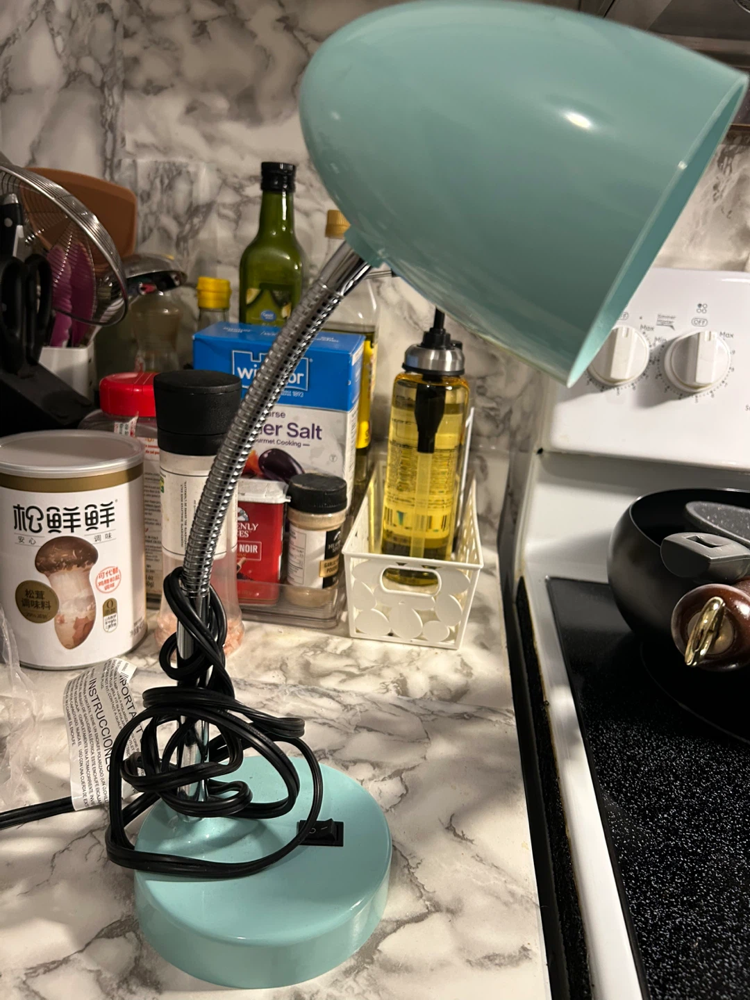 I'm selling a cute turquoise gooseneck desk lamp! It's in great condition and perfect for a desk or bedside table. The lamp has a flexible gooseneck so you can adjust the light to just the right angle height 40cm