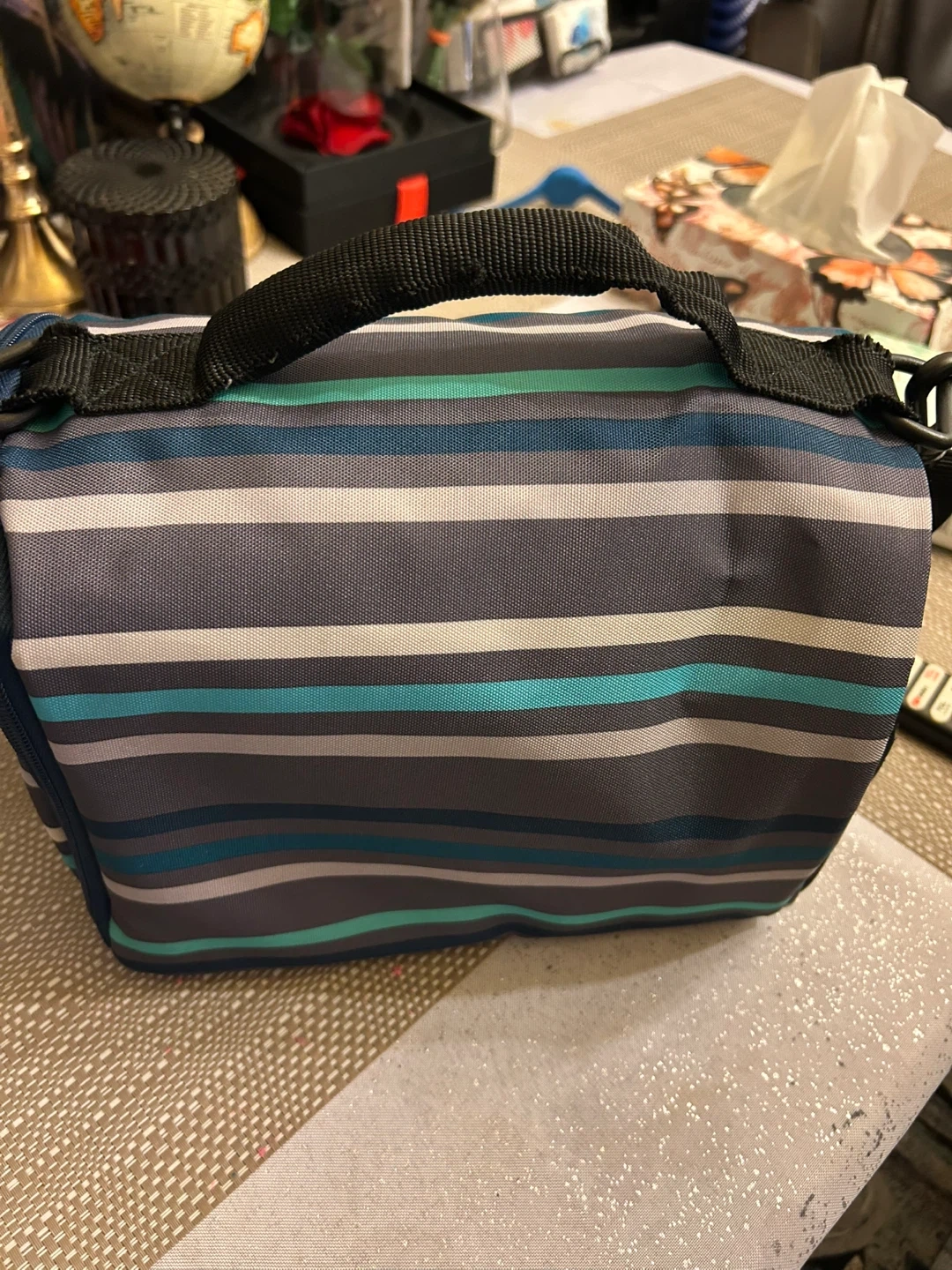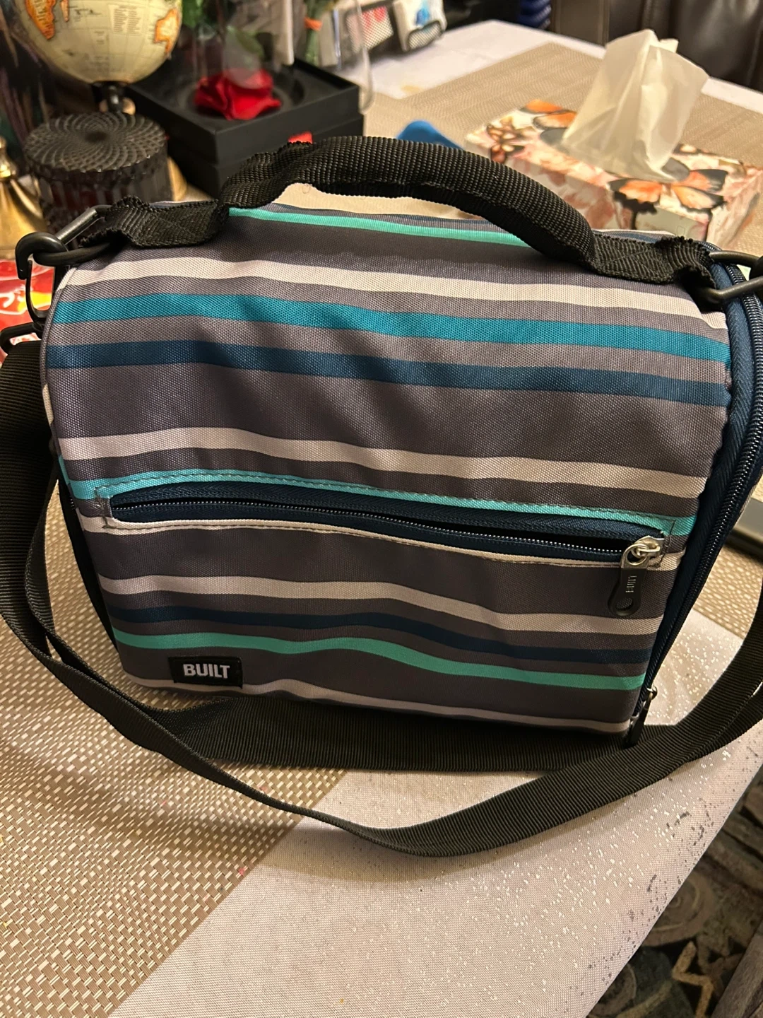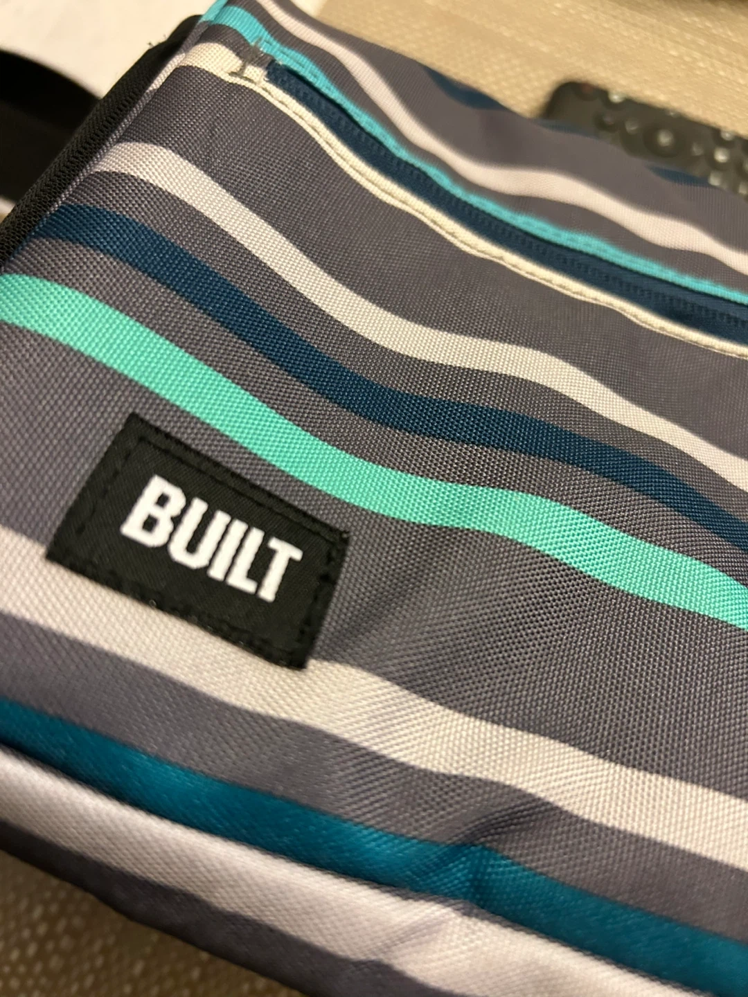Here's a BUILT lunch bag with a cool striped design! It's in great shape and ready to keep your lunch fresh and cool. Perfect for work, school, or picnics