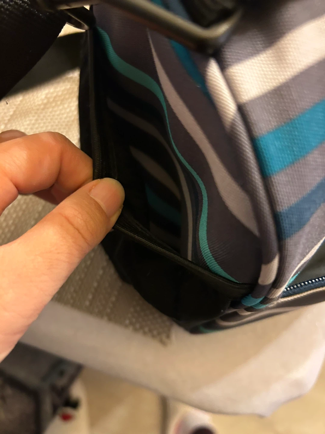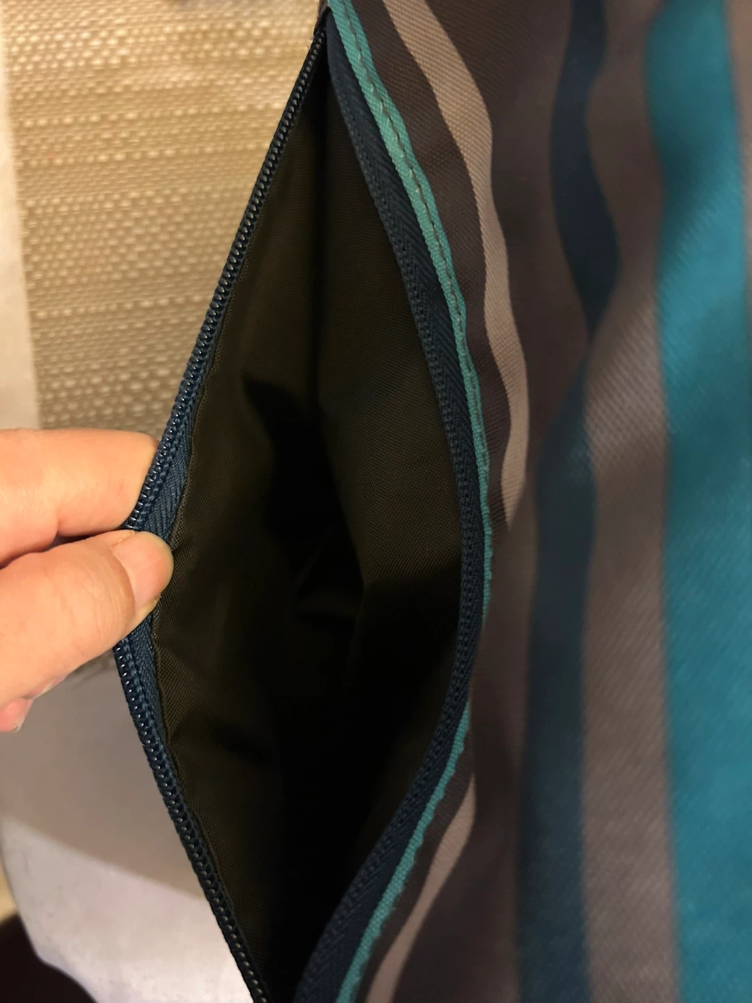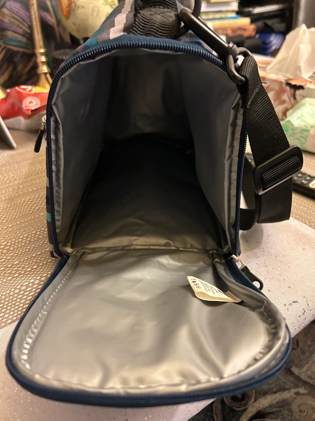 Here's a BUILT lunch bag with a cool striped design! It's in great shape and ready to keep your lunch fresh and cool. Perfect for work, school, or picnics