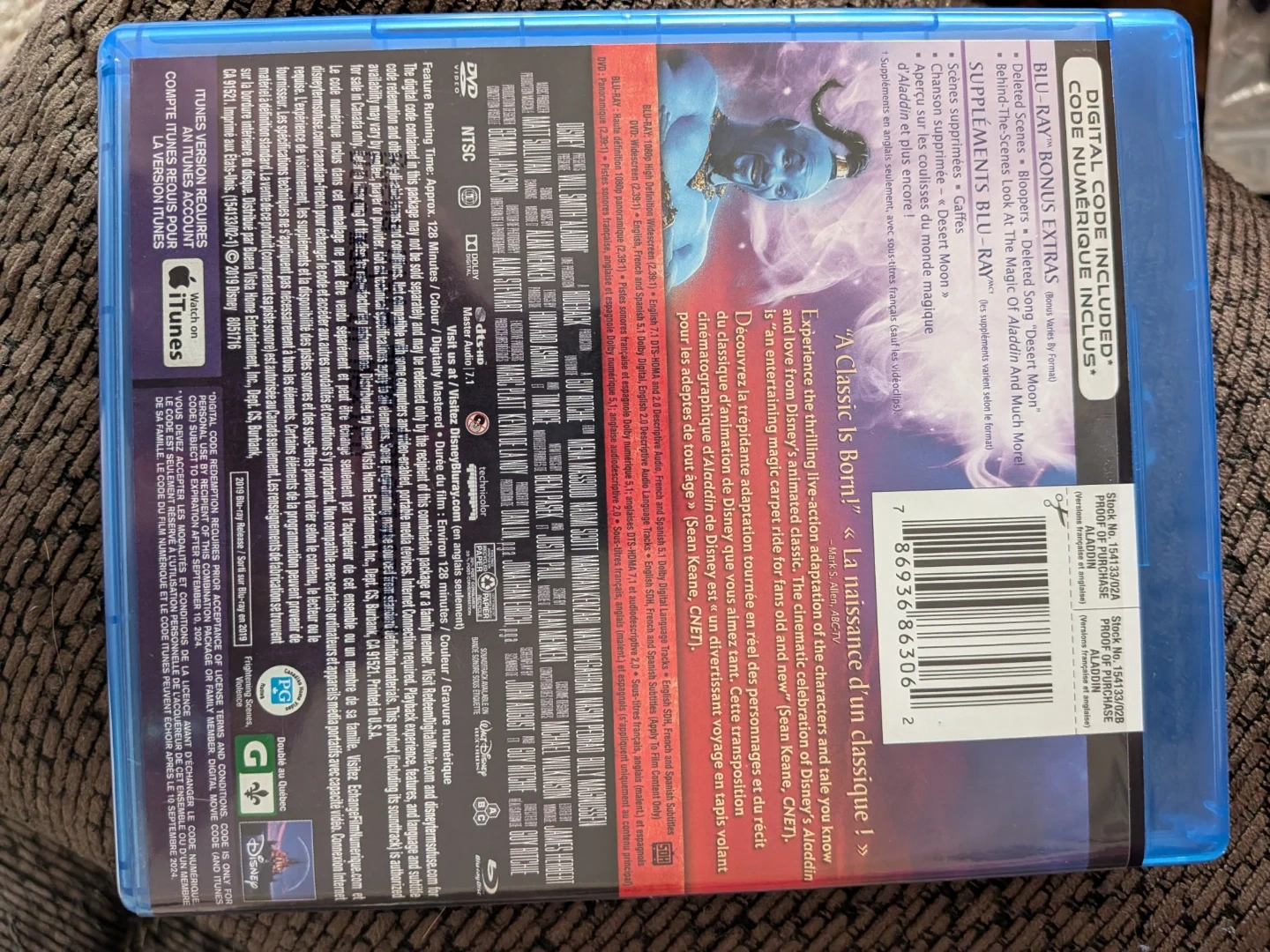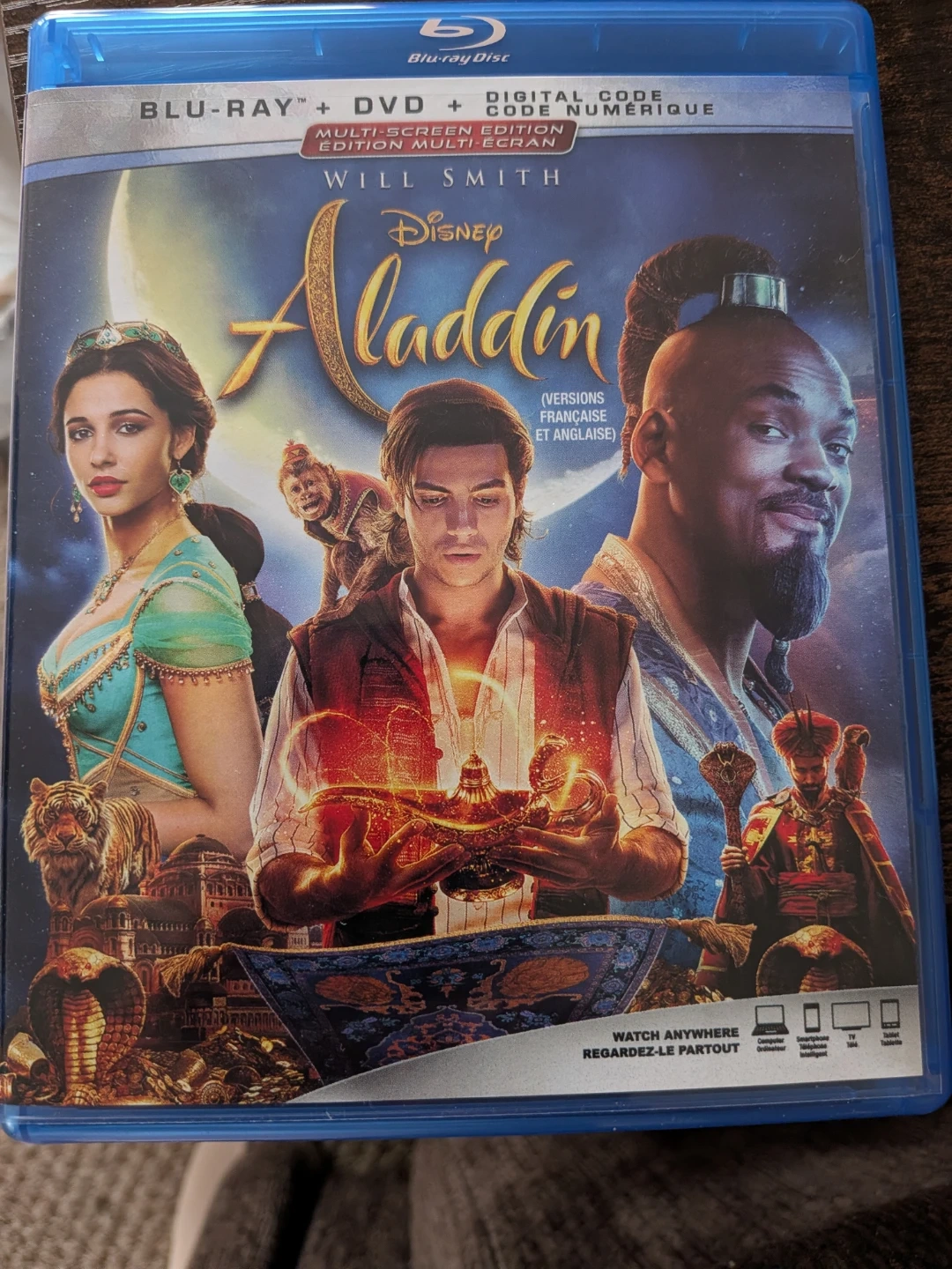 Aladdin on Blu-ray and DVD! This set also includes a digital code. Enjoy deleted scenes, bloopers, and more with the bonus extras. A classic for the whole family!