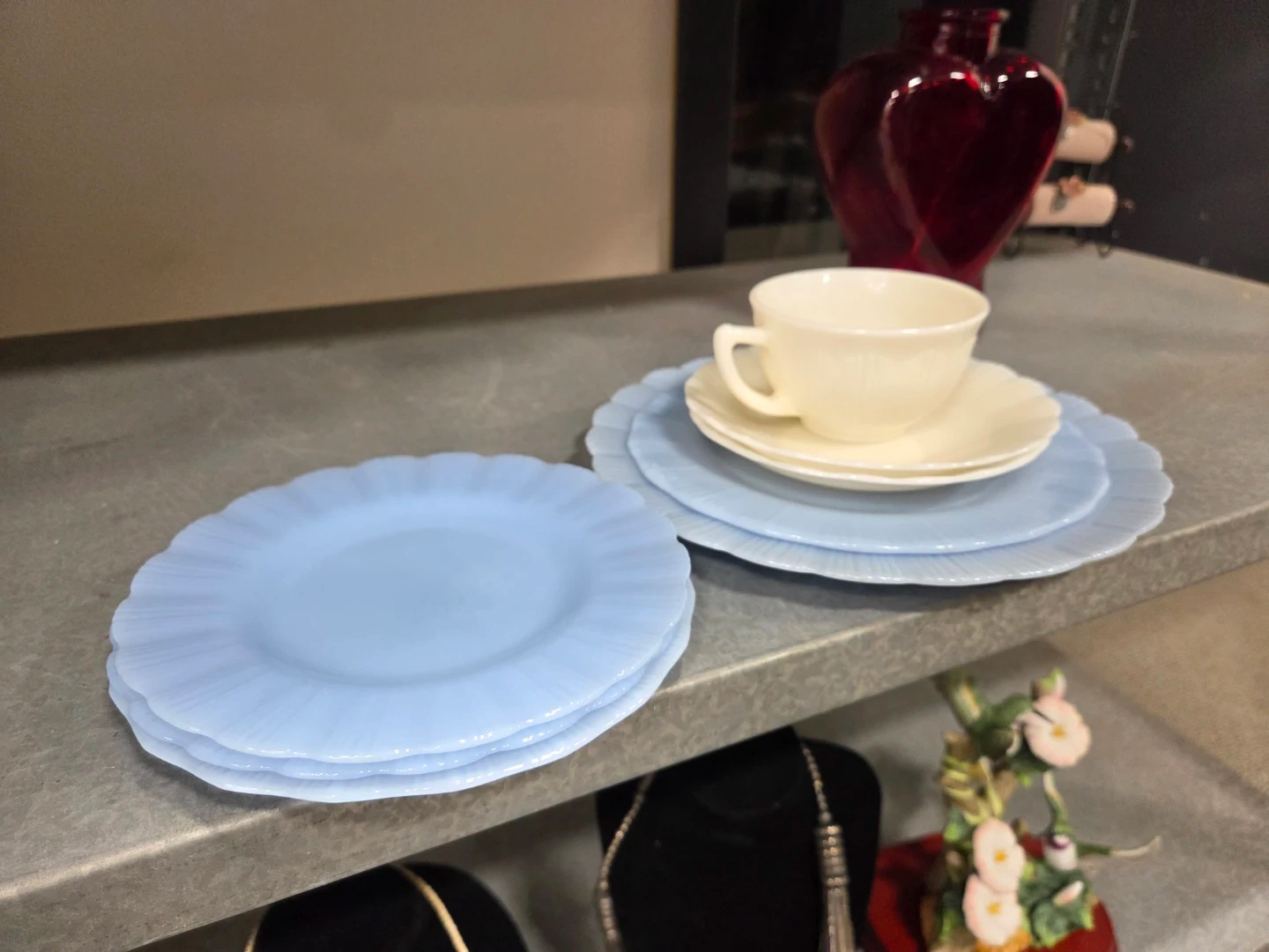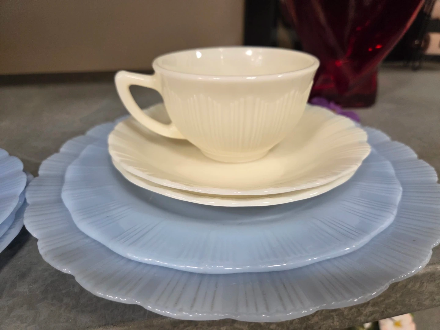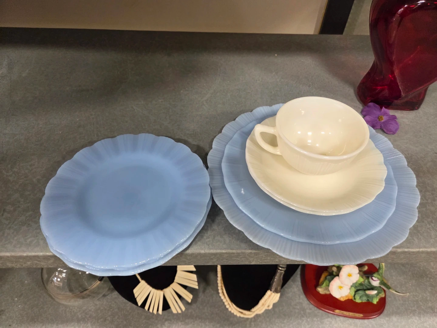 Vintage Pyrex Blue Plates & Cup