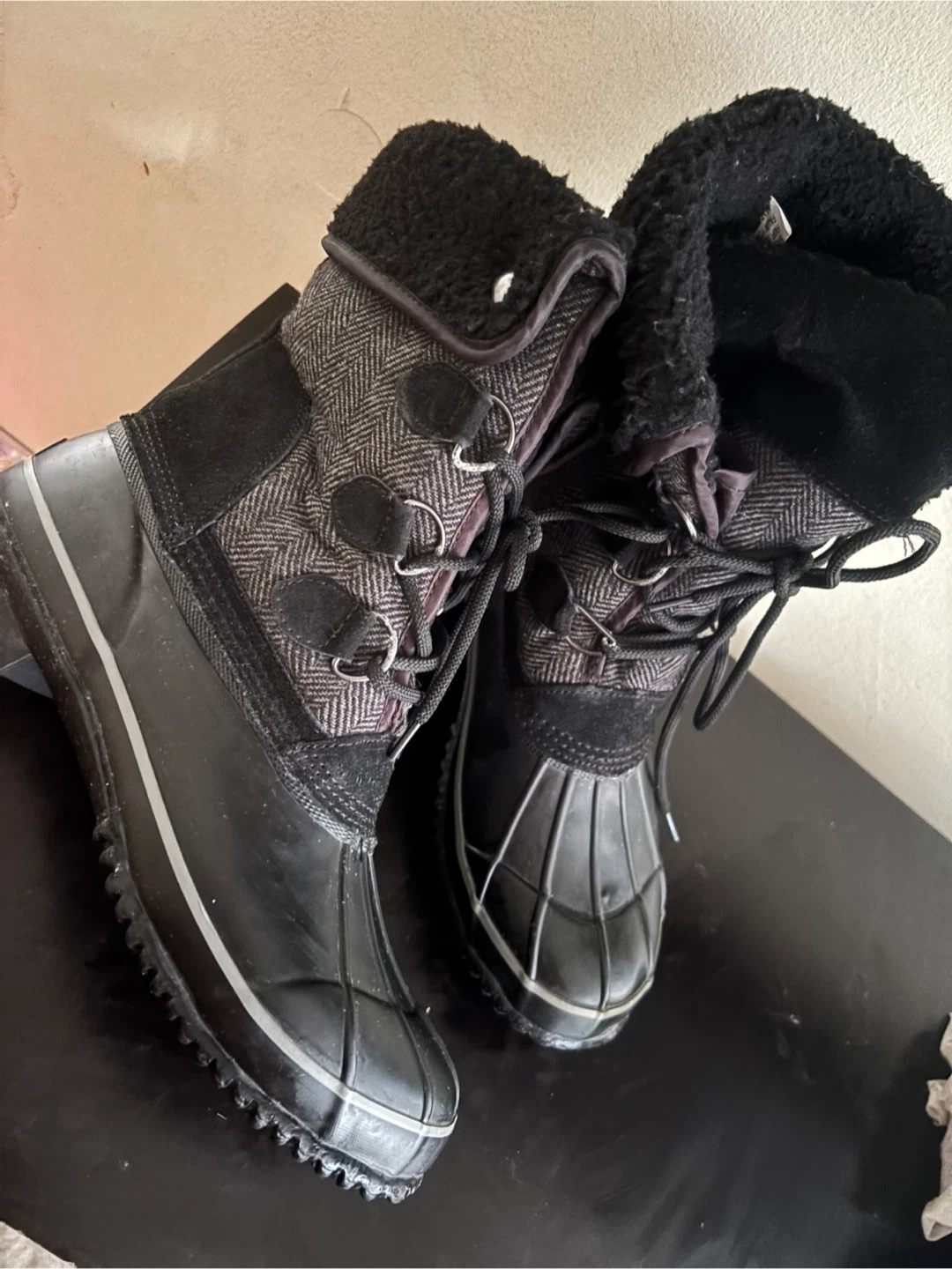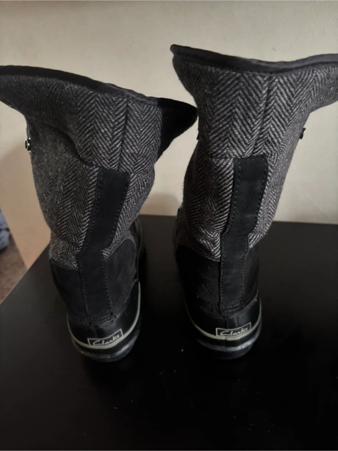 Cozy and stylish winter boots by Clarks , size 10M! These boots feature a man-made and leather upper, perfect for keeping your feet warm and dry during the colder months. They have a classic design that will complement any outfit. Great for everyday wear!