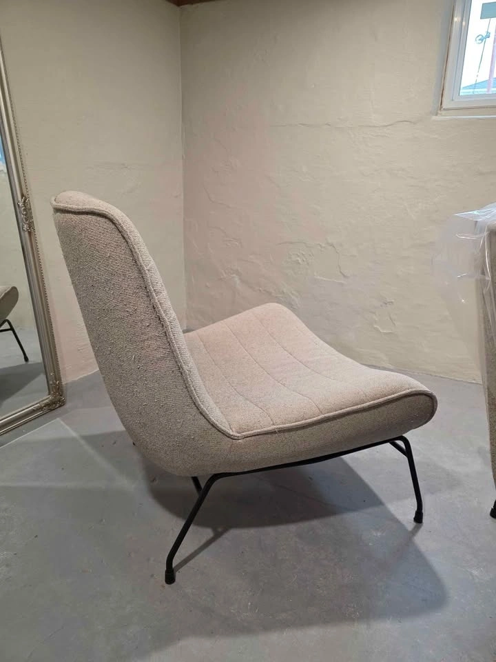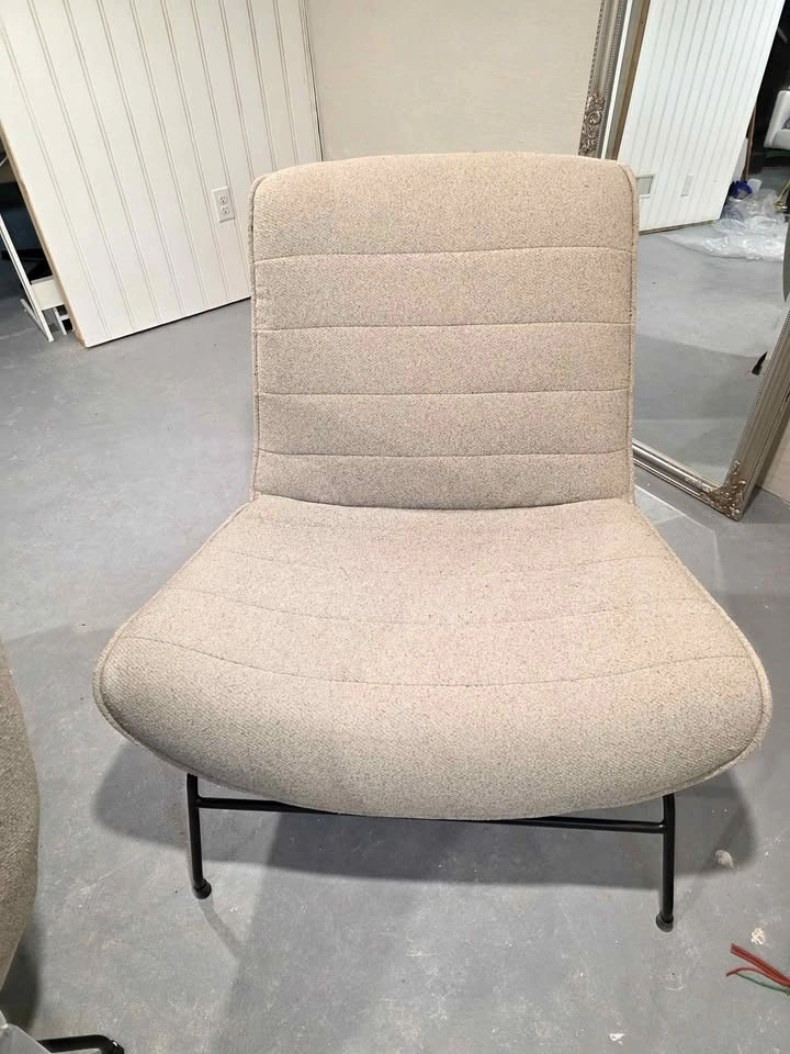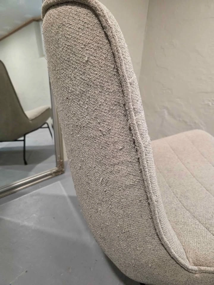 Soft, textured bouclé fabric with black metal legs. Sturdy, stylish and comfortable — perfect for a living room, bedroom, office, or studio space.