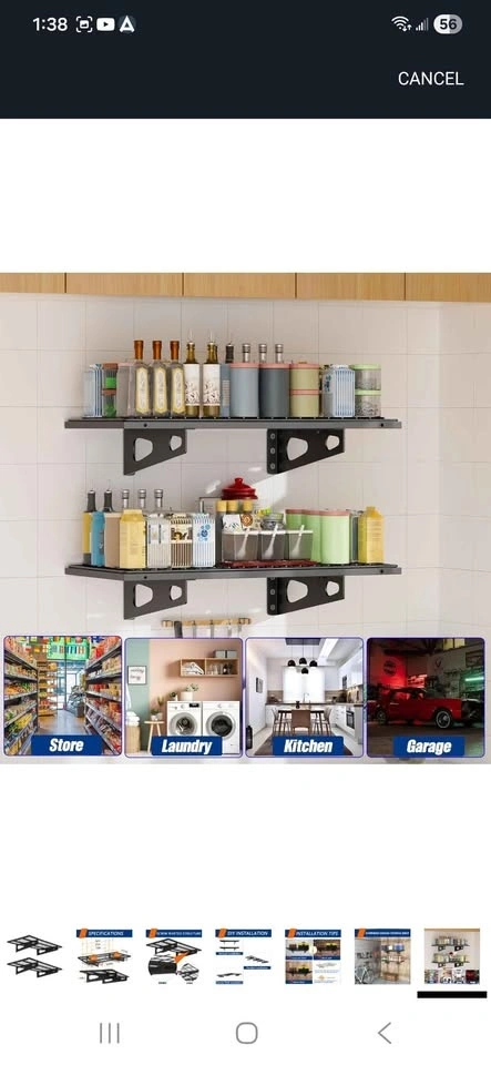 Brand New Garage Shelving 17.7-inch-by-35.8-inch Wall Shelf Garage Storage Rack Wall Mounted Floating Shelves (Black, 2Pack 1.5x3FT).