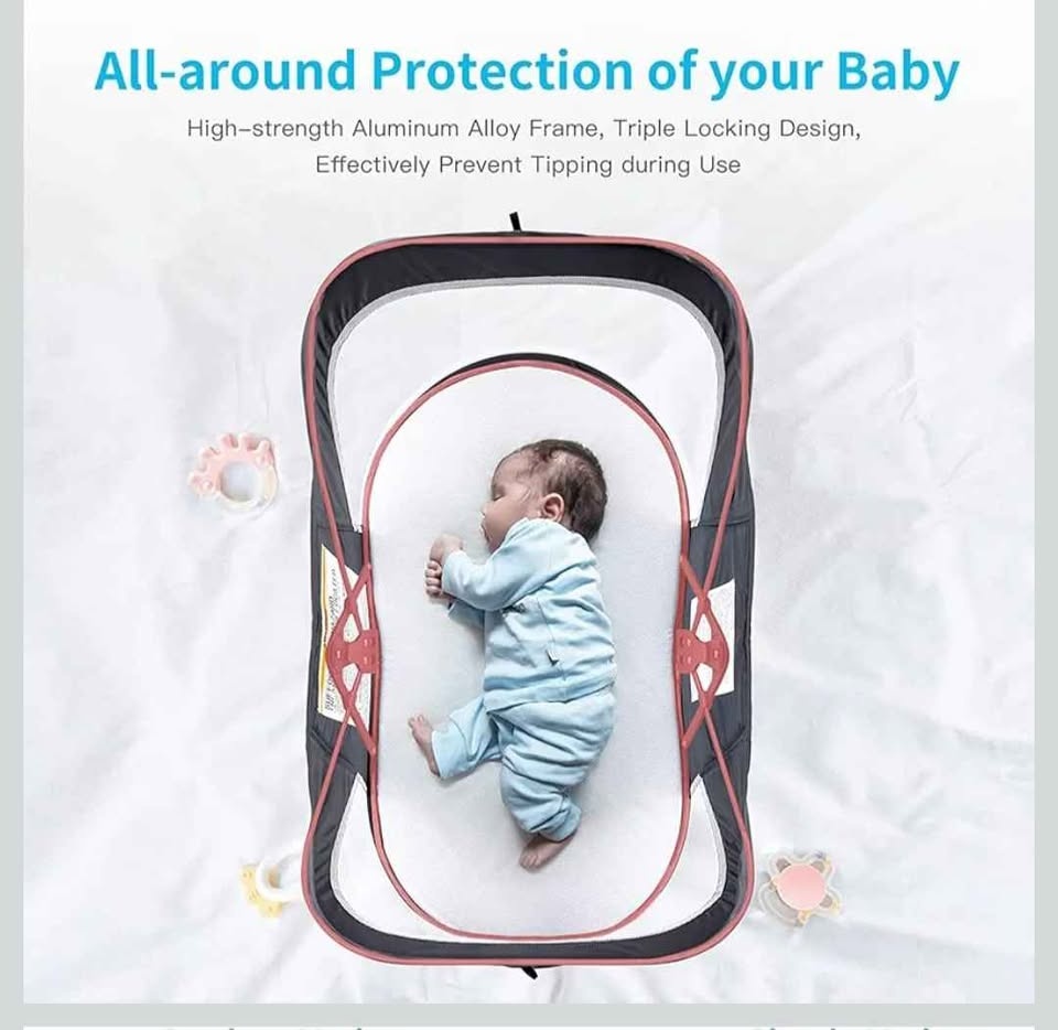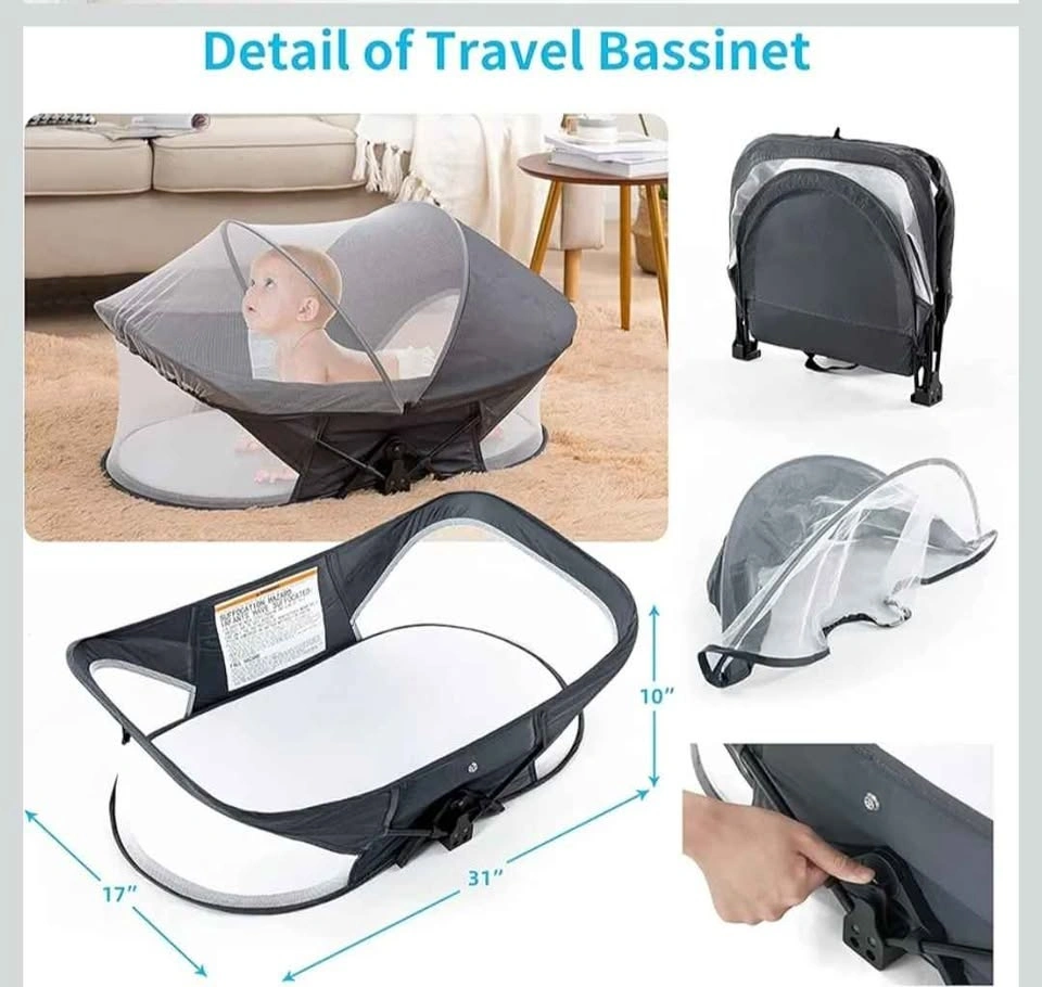 Brand New Ensure your baby sleeps soundly with this new portable travel crib featuring a mosquito net. This bassinet is designed to be lightweight and easily foldable, making it perfect for travel or moving around the house. Keep your little one safe from bugs while providing a cozy space for rest.