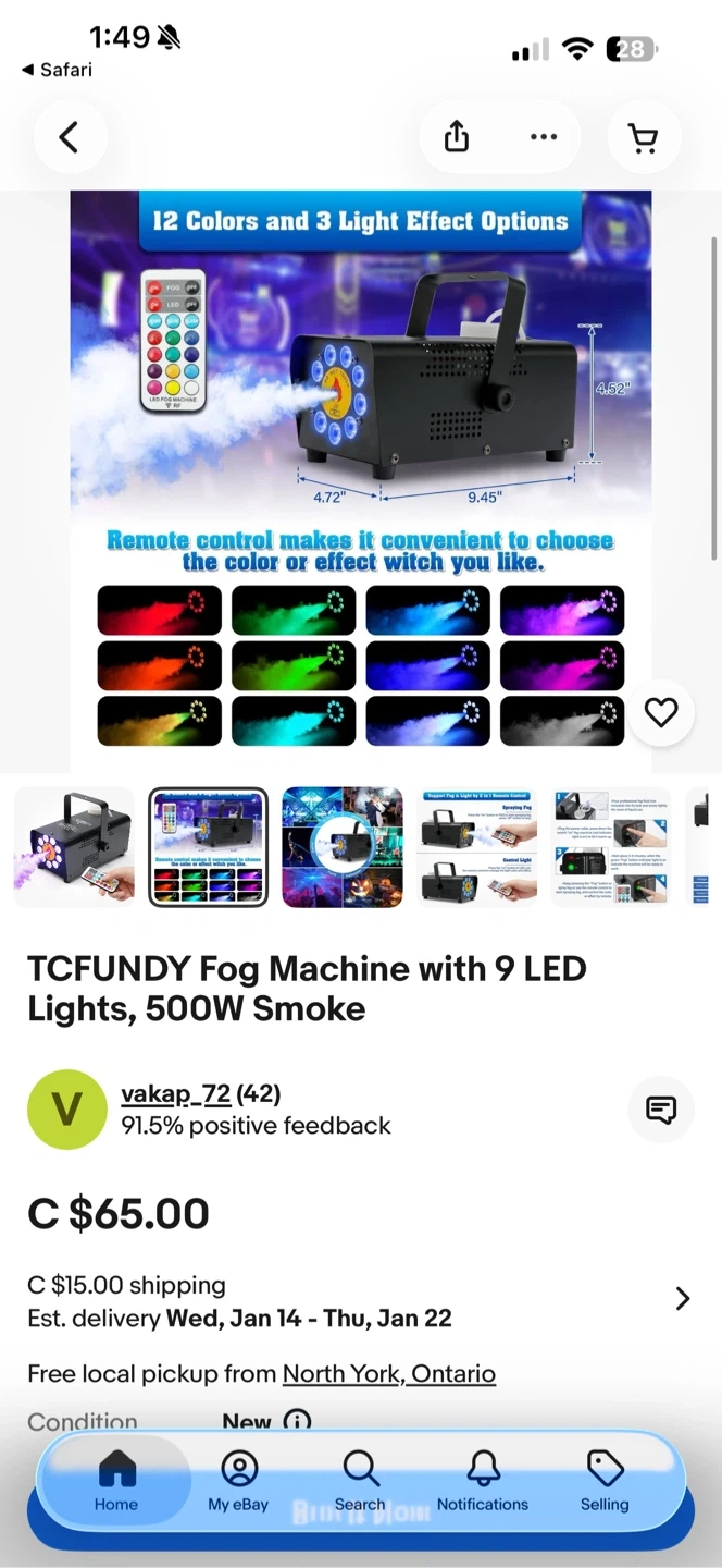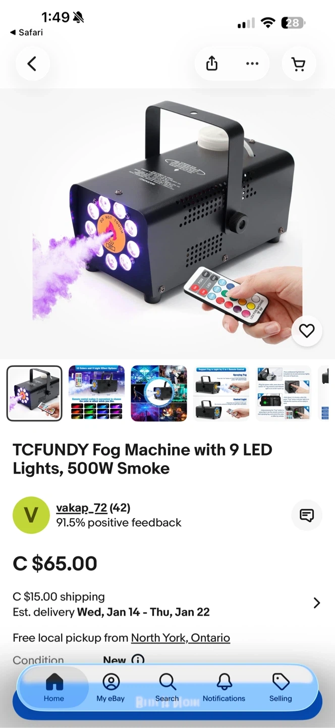 Selling a brand new TCFUNDY fog machine with 9 LED lights. It produces 500W of smoke and has 12 colours and 3 light effect options. It also comes with a remote to control the colour or effect you like