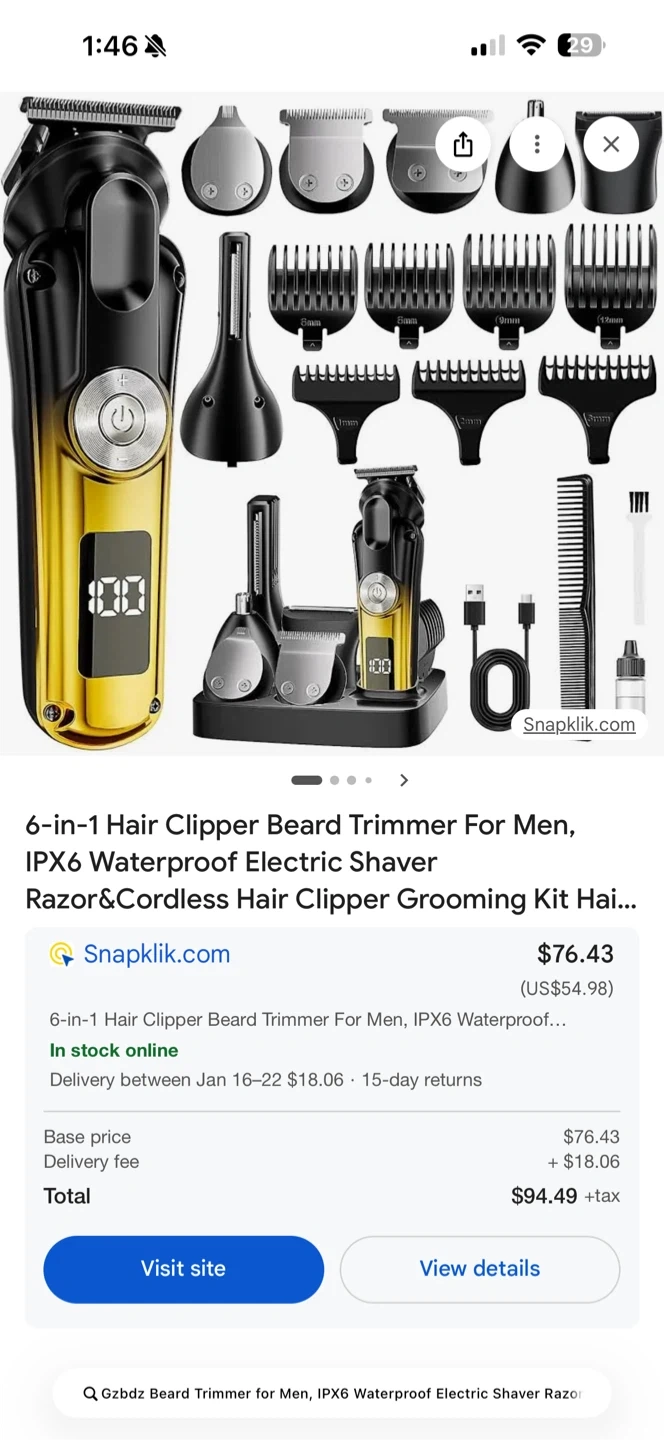 Selling a 6-in-1 hair clipper and beard trimmer. It's an IPX6 waterproof electric shaver and comes with a grooming kit. Great for all your grooming needs!