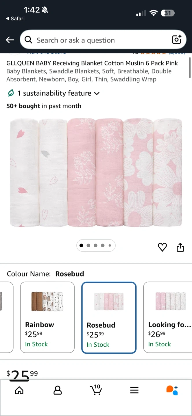 Selling a set of GLLQUEN baby receiving blankets! These are cotton muslin blankets, perfect for swaddling. The pack includes 6 blankets in a lovely rosebud colour. They are soft, breathable, and absorbent, great for newborns, boys, or girls. Originally bought for $25.99