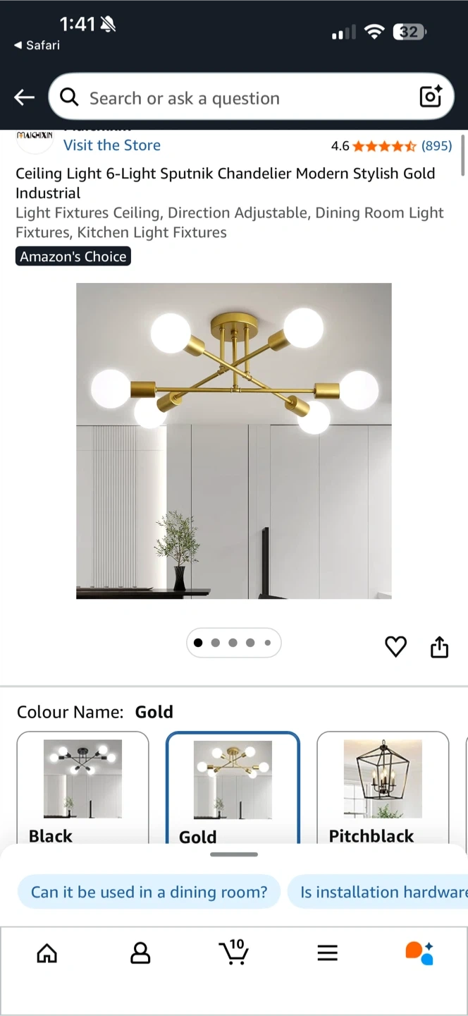 Selling a stylish gold Sputnik chandelier! It features a modern, industrial design with 6 lights. The light fixtures are direction adjustable, making it perfect for a dining room or kitchen. Originally bought for $44.99
