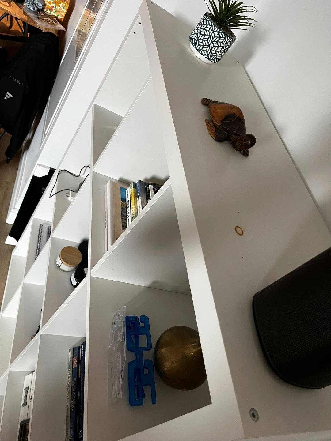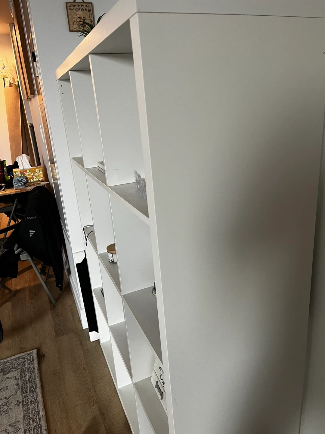 Selling a white shelving unit. It's in good condition and ready for a new home! Perfect for organizing books, decor, or anything else you need to store