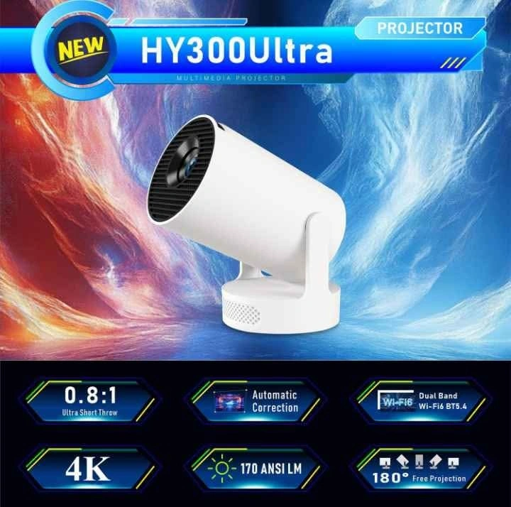 Realm Cast Projector, HD My Realm Cast Projector, Hy300pro+ Mini proyector portátil con Wifi 6 y Bluetooth 5.4, Keystone vertical automático giratorio de 180 ° Ultra 4K proyectores de película