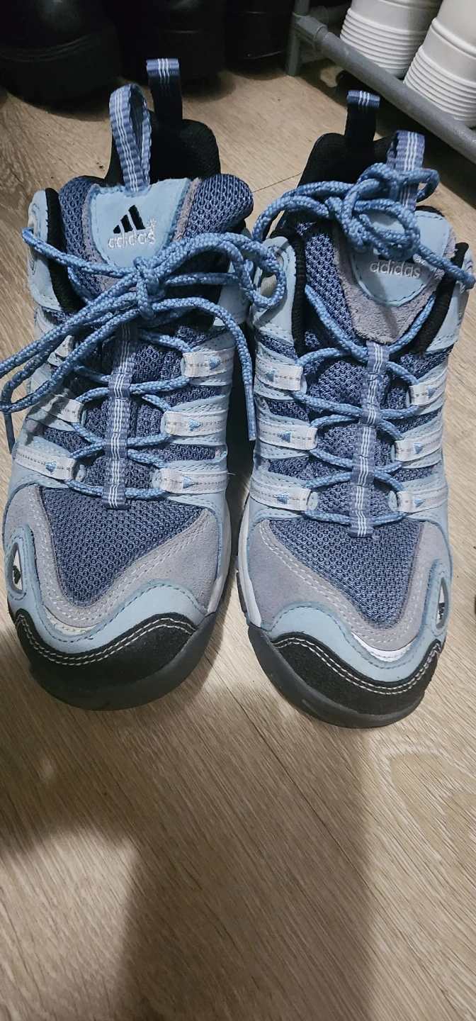 Selling a pair of Adidas hiking shoes in blue! They're in good condition and ready for some outdoor adventures. Only used them 4/5 times