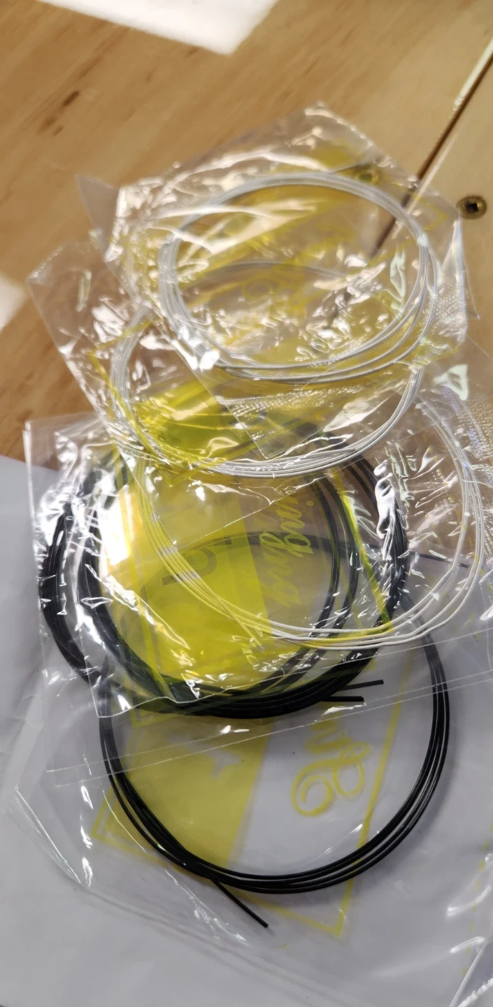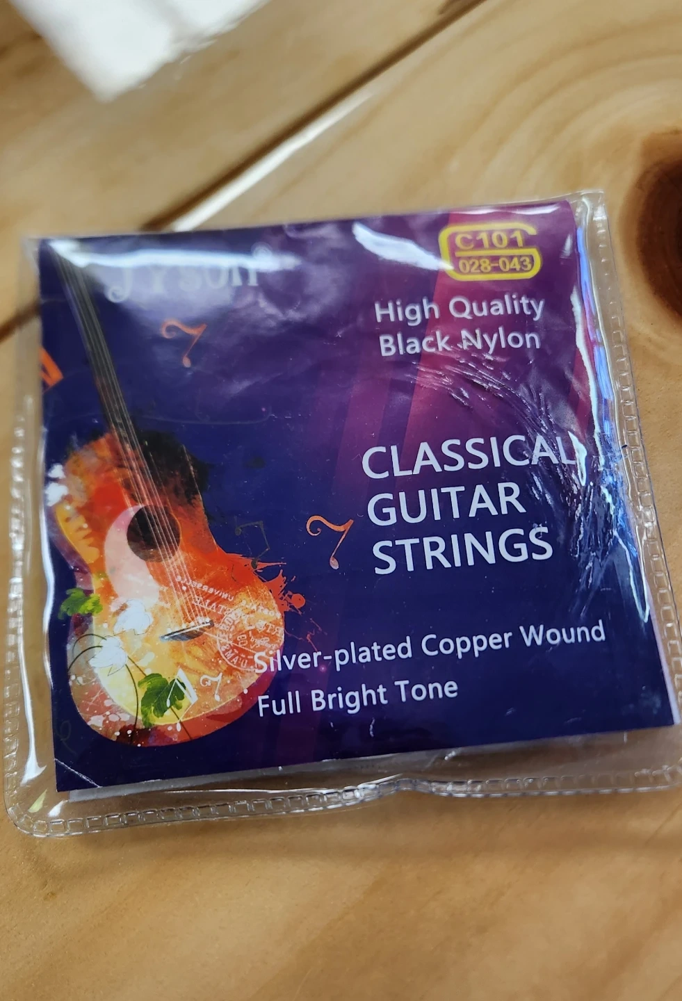 Selling a new set of Jixson classical guitar strings. These are high quality black nylon strings, with silver-plated copper wound, designed for a full bright tone. Perfect for any classical guitar player looking for a fresh set of strings!