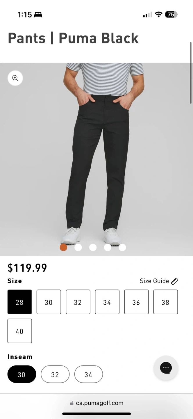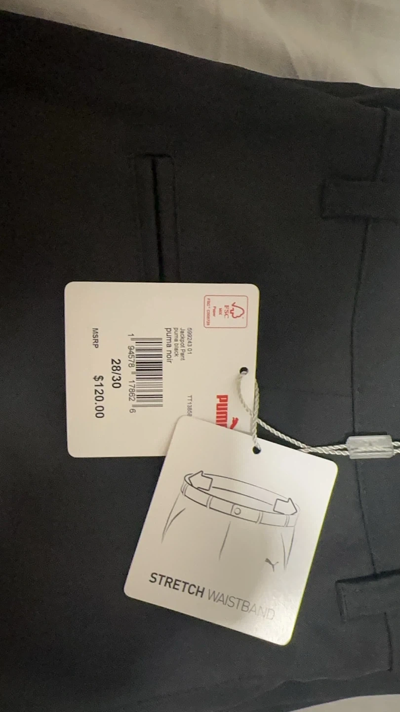 These Puma golf pants are brand new with tags! They're a sleek black colour and size 28/30. They feature a comfortable stretch waistband. The original price was $120.00