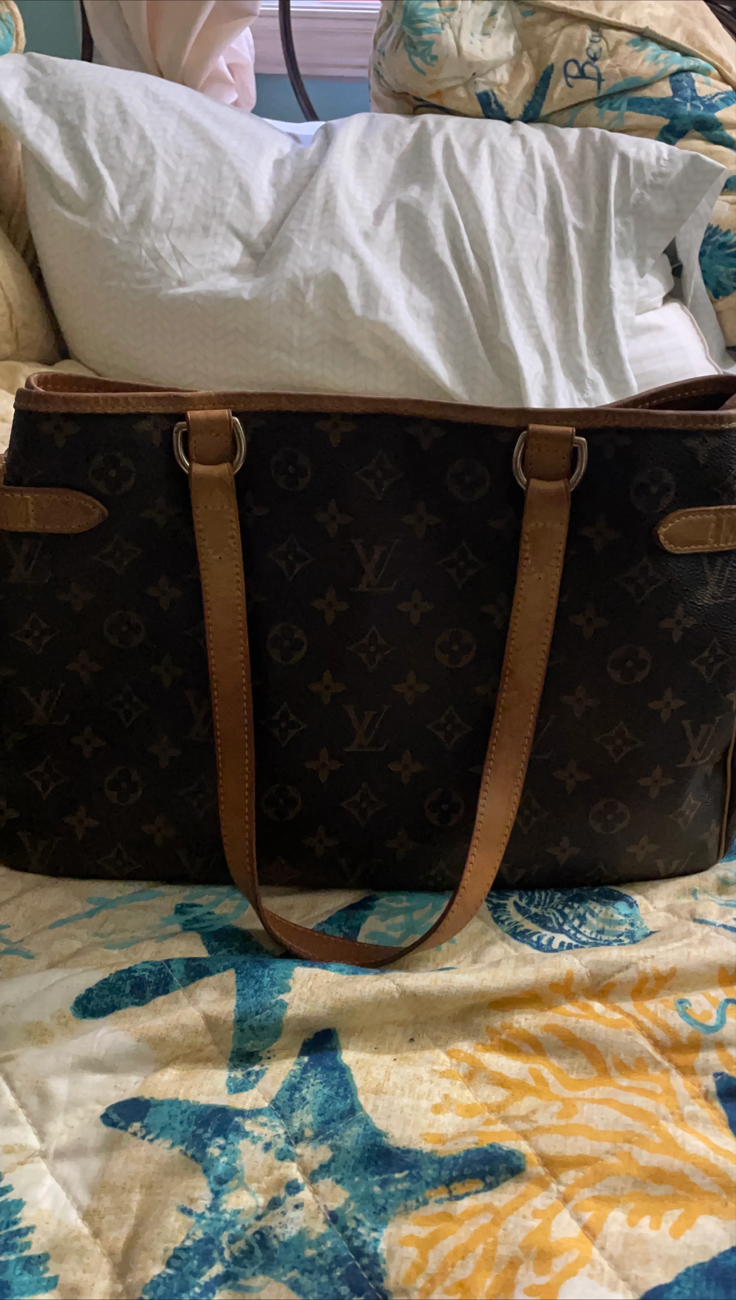 This is a Louis Vuitton Batignolles Horizontal bag in monogram canvas. It features brown leather straps and trim, with gold-tone hardware. It's a great everyday bag!