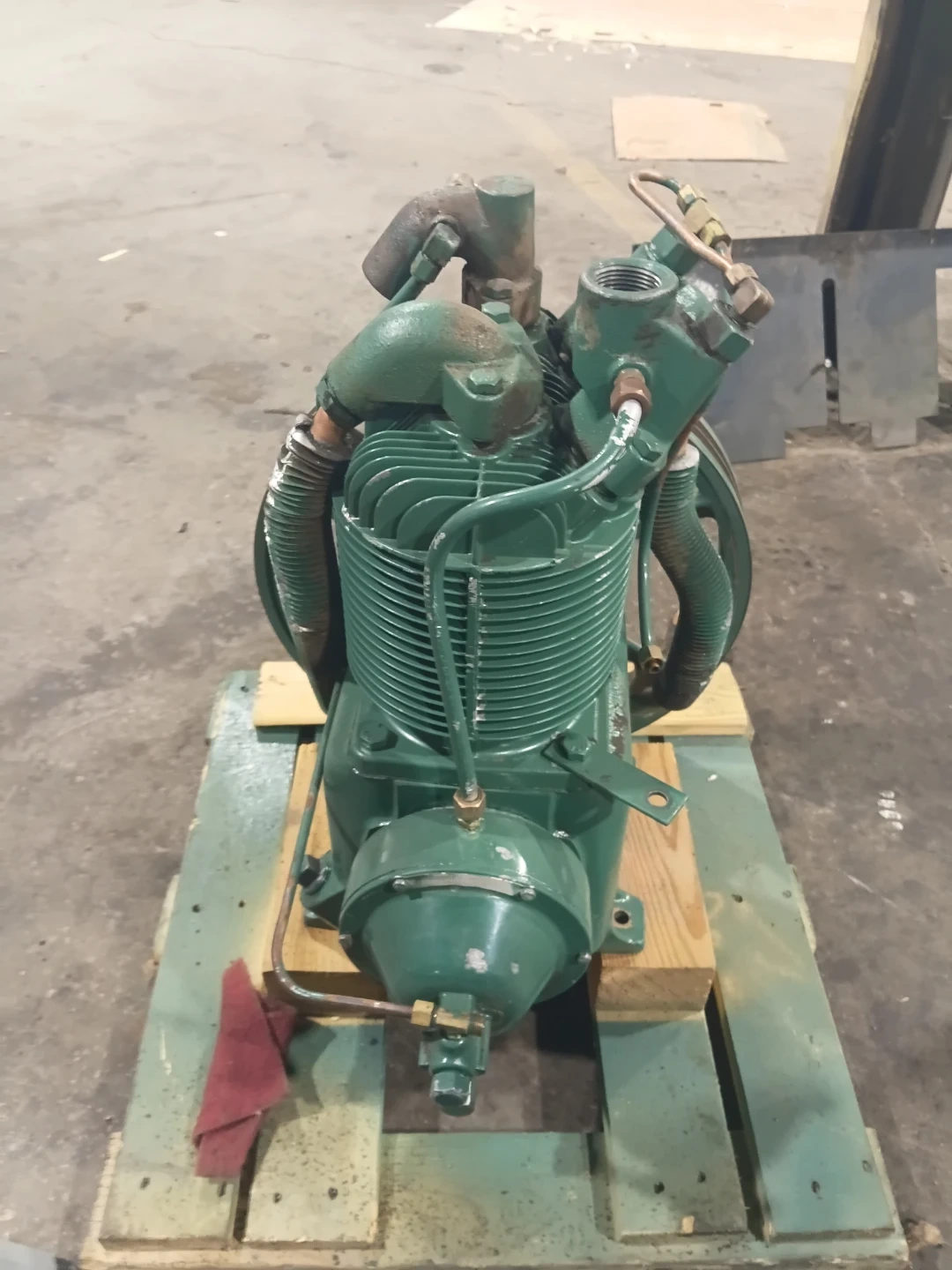 Selling a green air compressor. It's in used condition, as shown in the pictures. The serial number is DR0165106. Perfect for anyone needing a reliable compressor for their projects