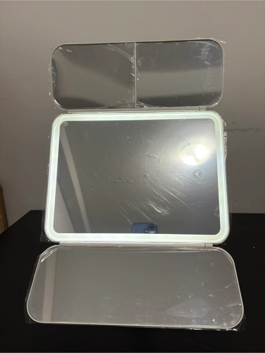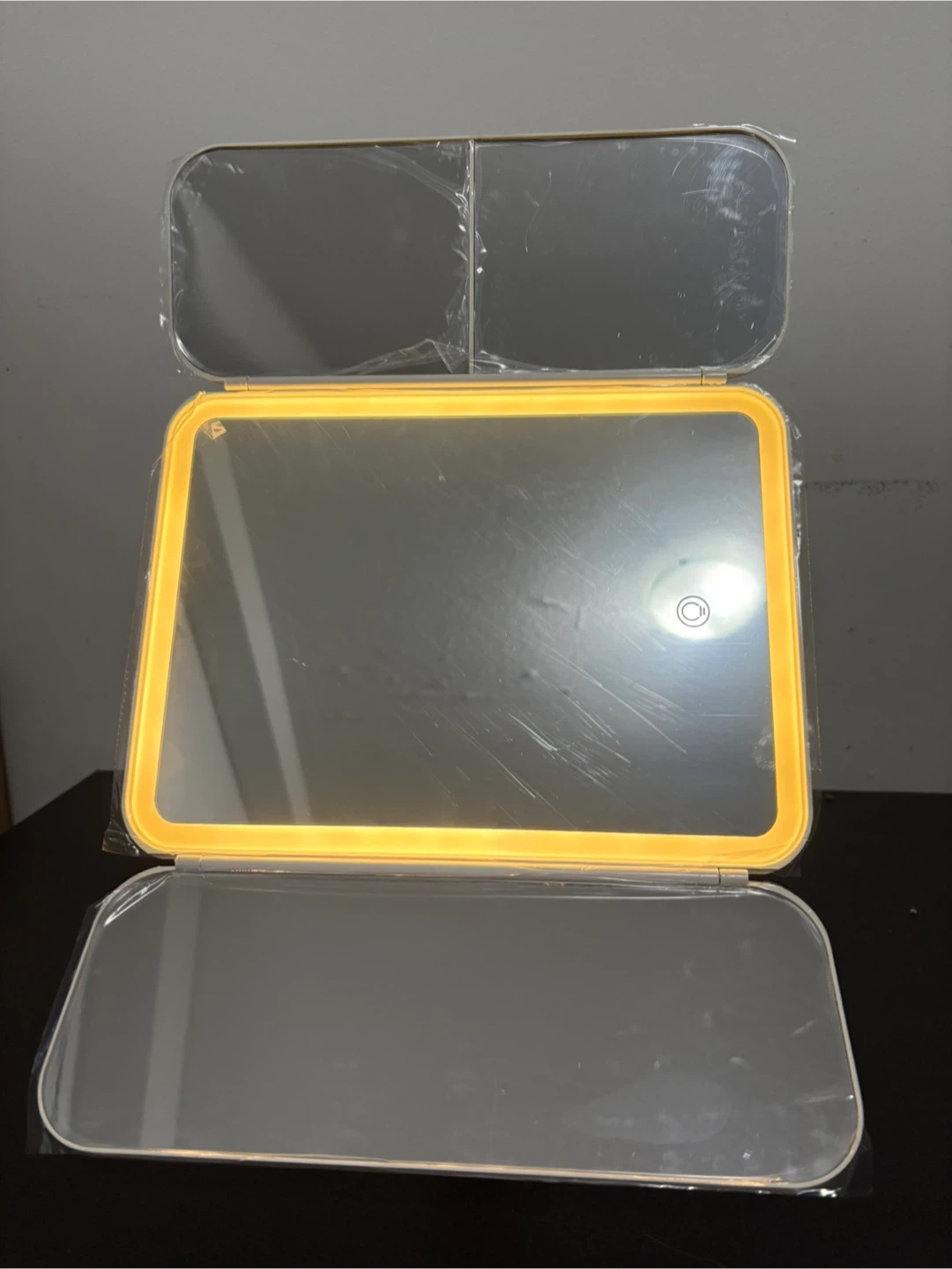 Multiple sets of brand new LED lighted cosmetic mirrors, perfect for makeup application with adjustable angles and a removable design. It's in pristine condition, still in its original packaging, ready to light up your beauty routine!