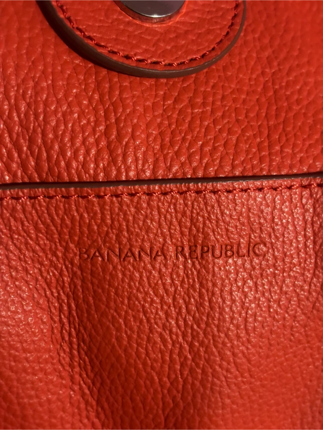 Brighten up your day with this vibrant orange leather tote bag from Banana Republic! It's a stylish and practical accessory for carrying your essentials.