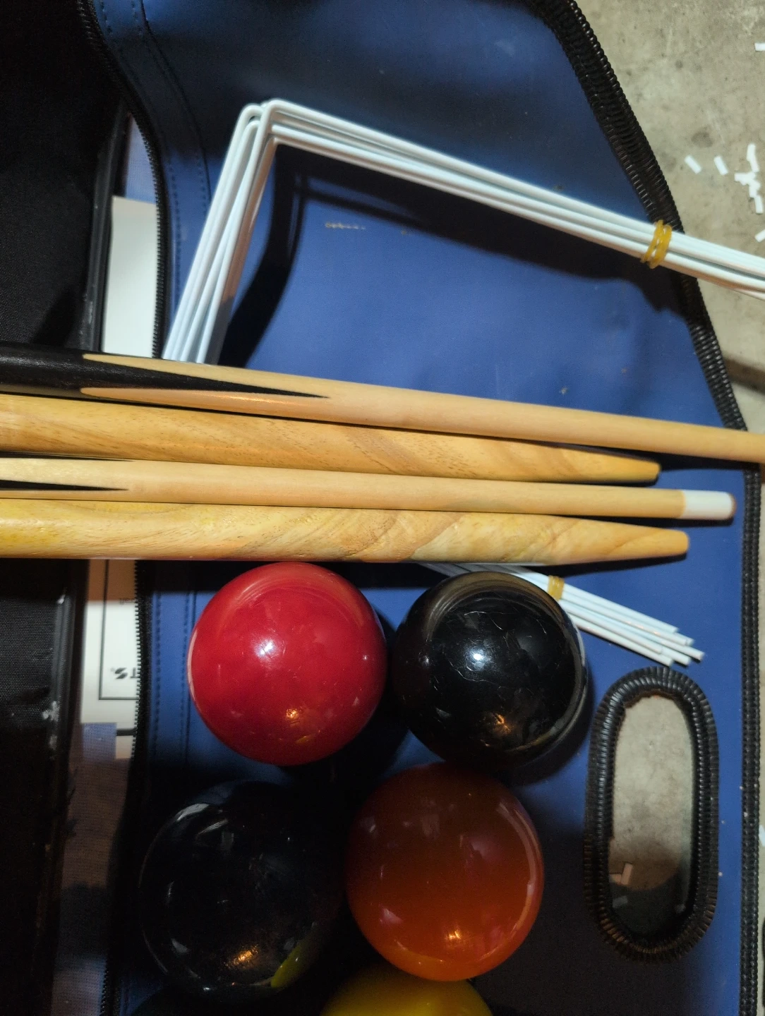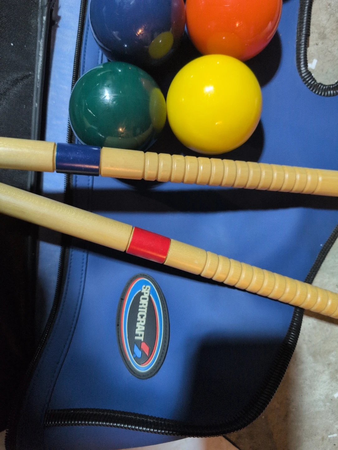 Selling a Sportcraft croquet set, complete with mallets, balls, wickets, and a convenient carrying case. It's perfect for some outdoor fun with friends and family!