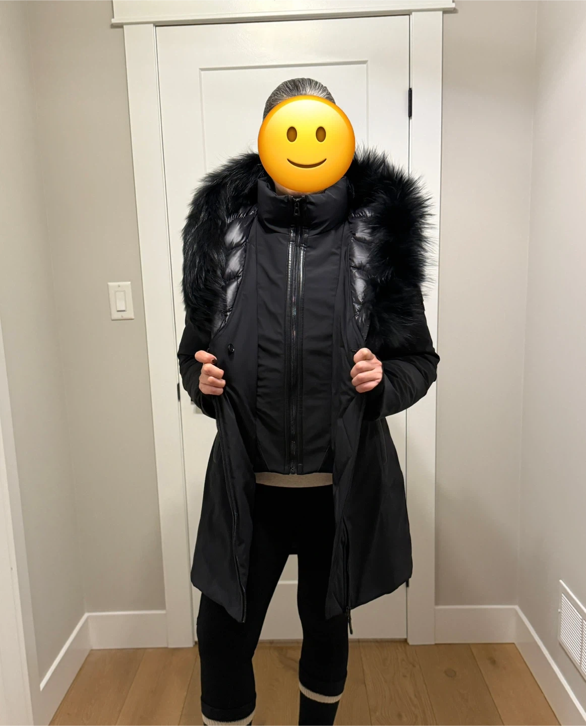Purchased it at the end of winter last year than ended up losing weight and jacket is just way to big for me.