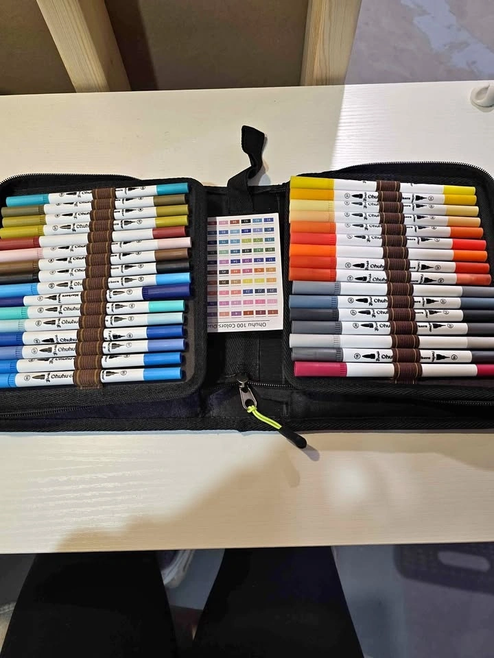 Selling a large Ohuhu dual-tip art marker set in the original zippered carrying case. Perfect for artists, illustrators, designers, bullet journaling, colouring, or lettering.
