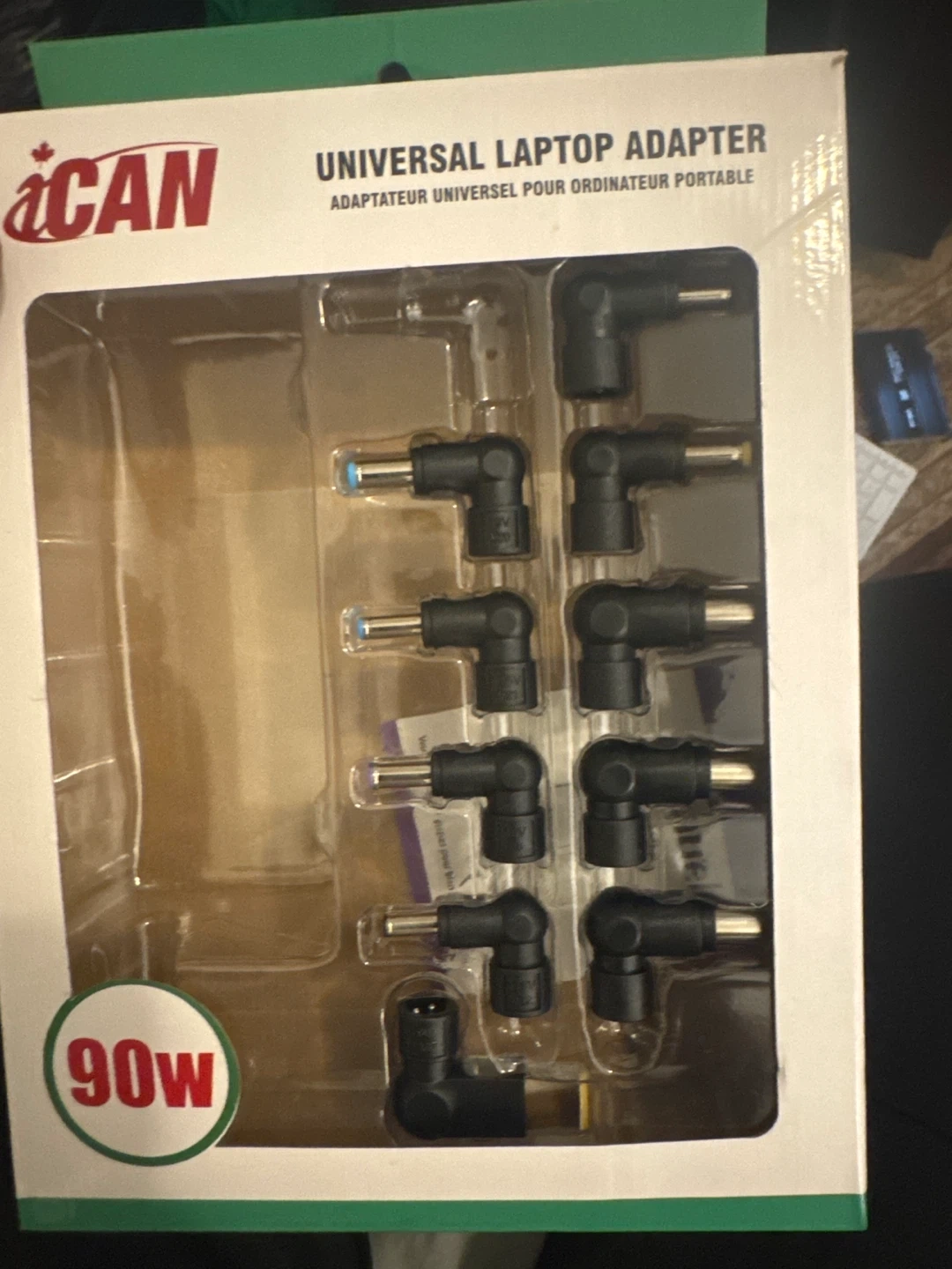 Selling an iCAN universal laptop adapter, 90W. It comes with multiple adapter tips to fit a variety of laptops. Box included!