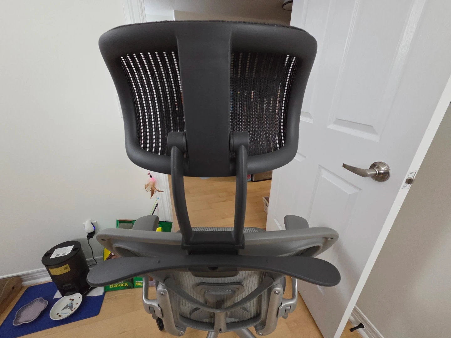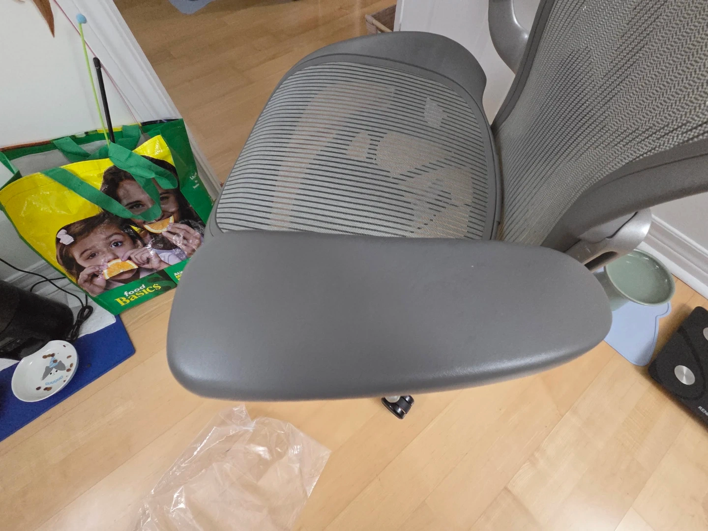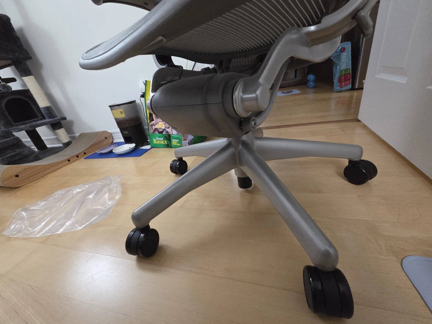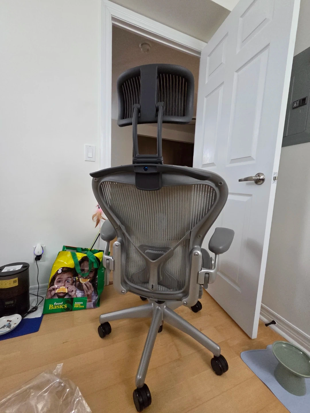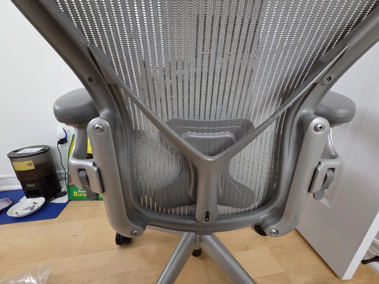 Selling a Herman Miller Aeron office chair in grey. It's in great shape and ready for a new workspace! Perfect for long hours of work or study, this chair provides excellent support and comfort.