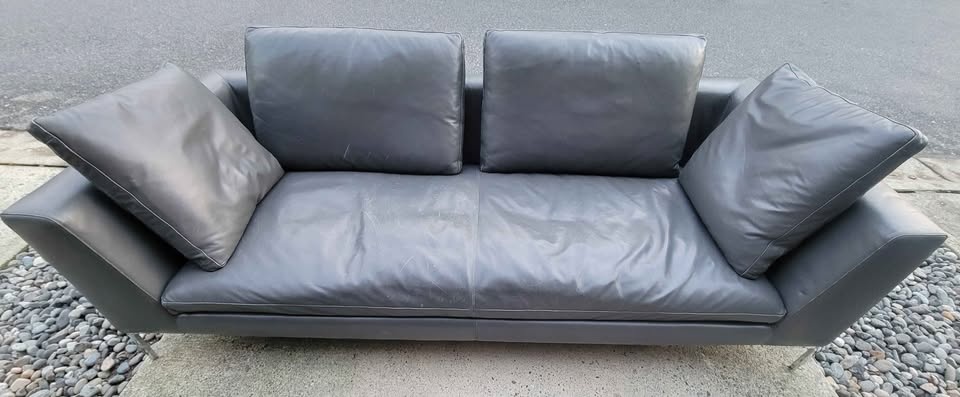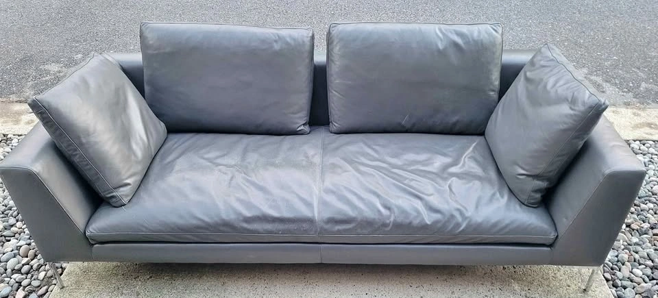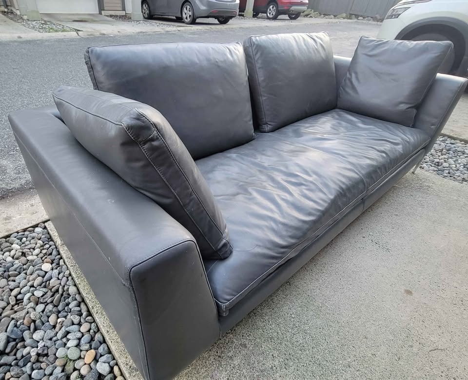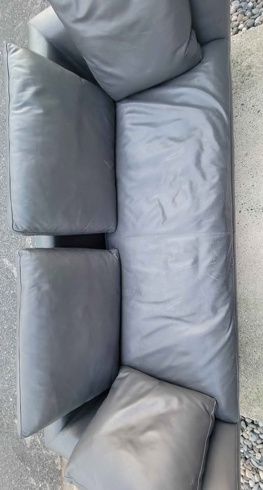 It is very nice soft leather, and the cushions and pillows are down filled with foam inserts.