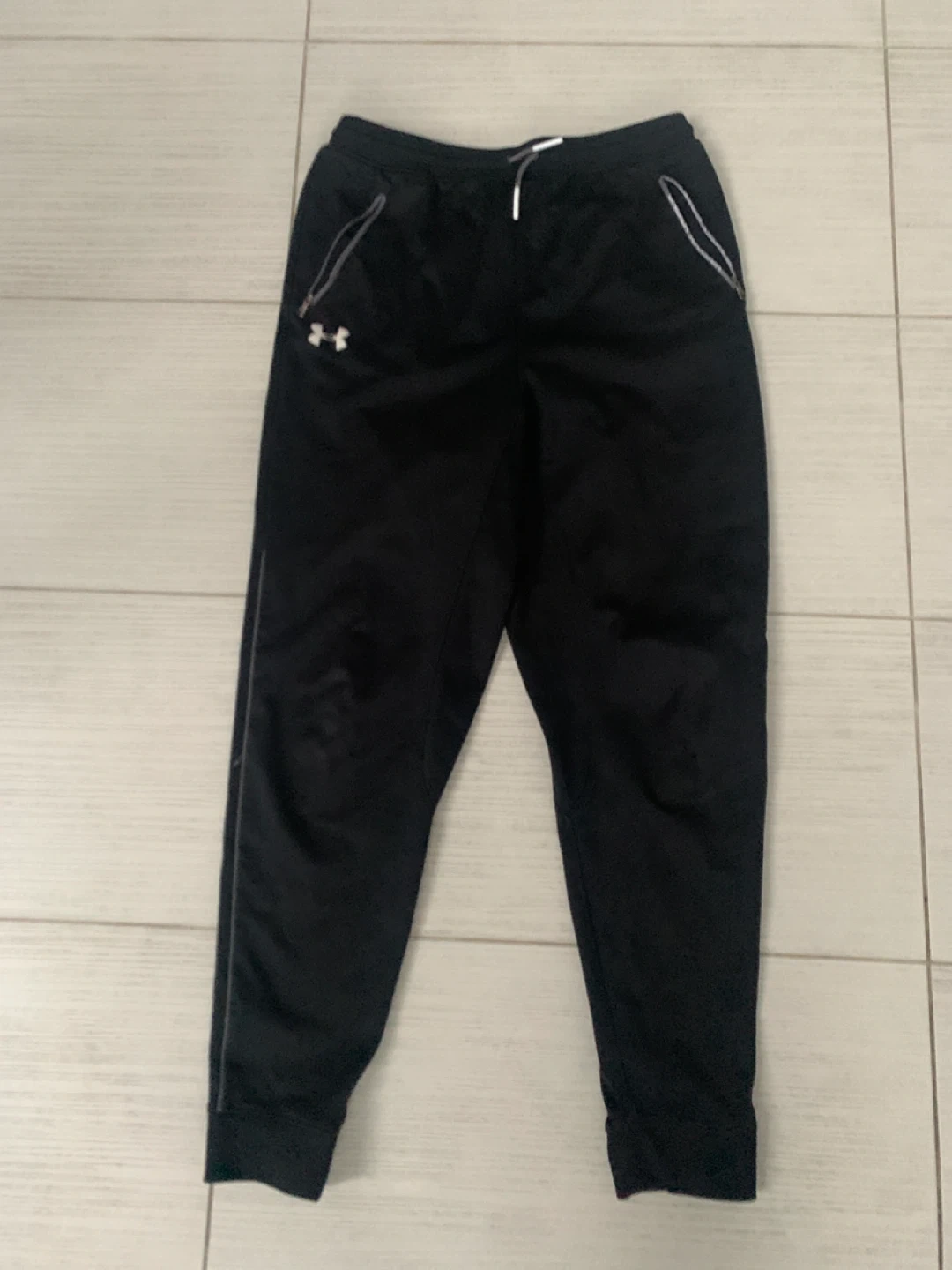 Selling a pair of Under Armour track pants in size YXL. They are black and in good condition. Perfect for sports or casual wear!