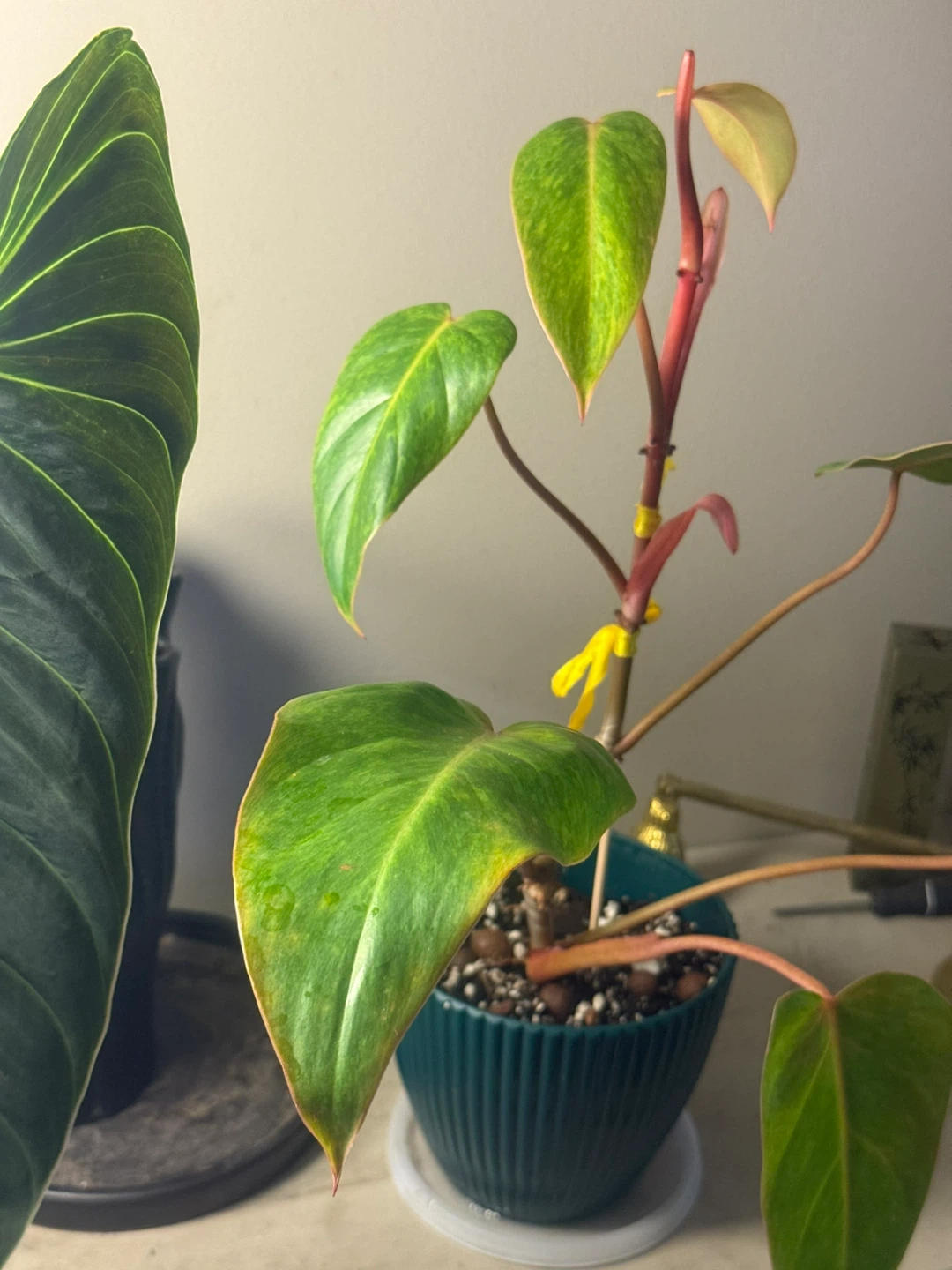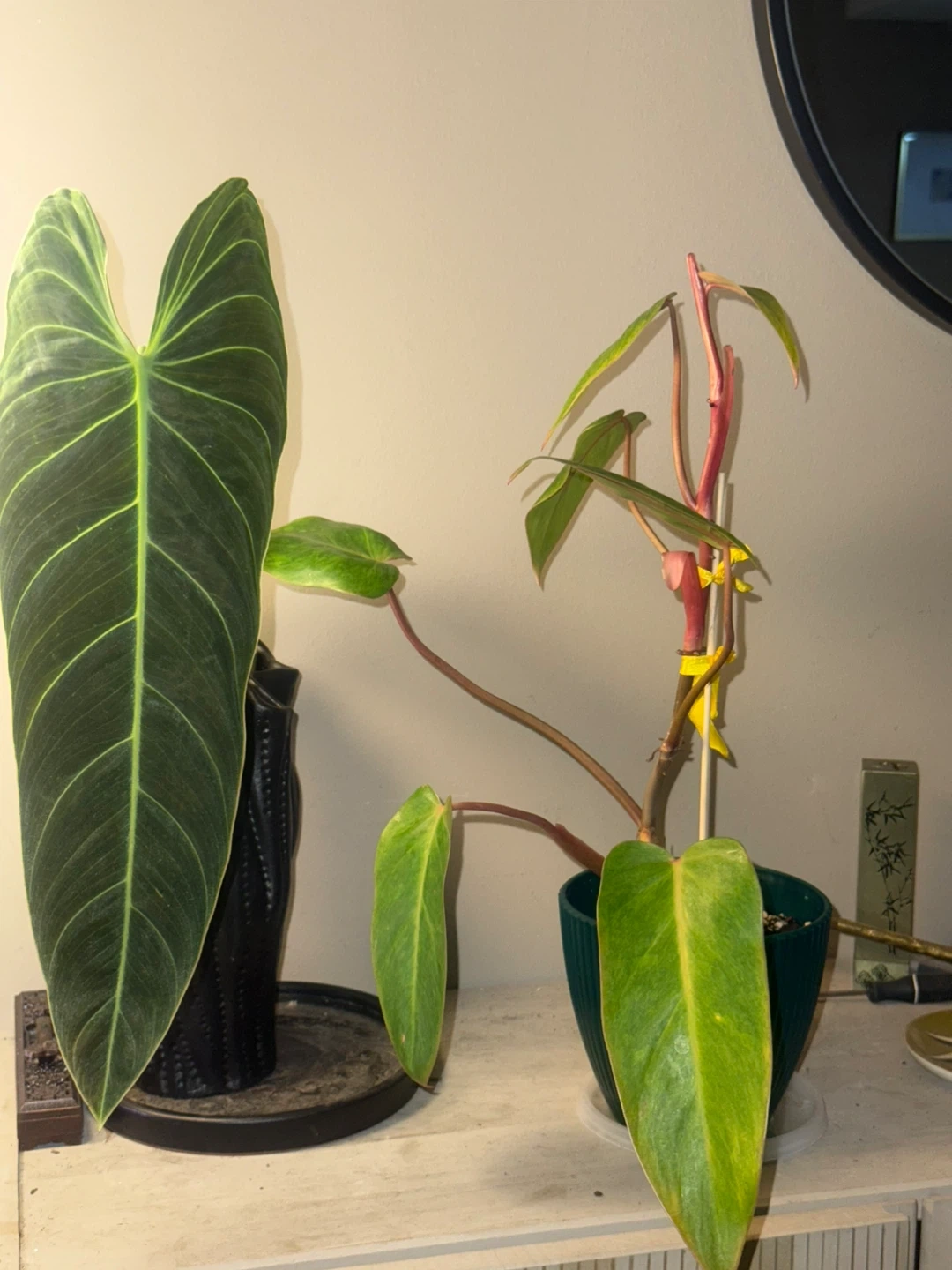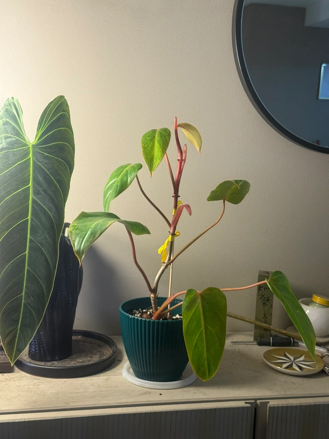 A beautiful Philodendron ‘painted lady’ plant that comes in a dark green planter. It’s a good combination on the visual to be adding into any room as a deco piece.