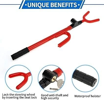This steering wheel lock is compatible with most vehicles on the market, fitting a wide range of cars, vans, and SUVs with its adjustable design up to 17 inches.