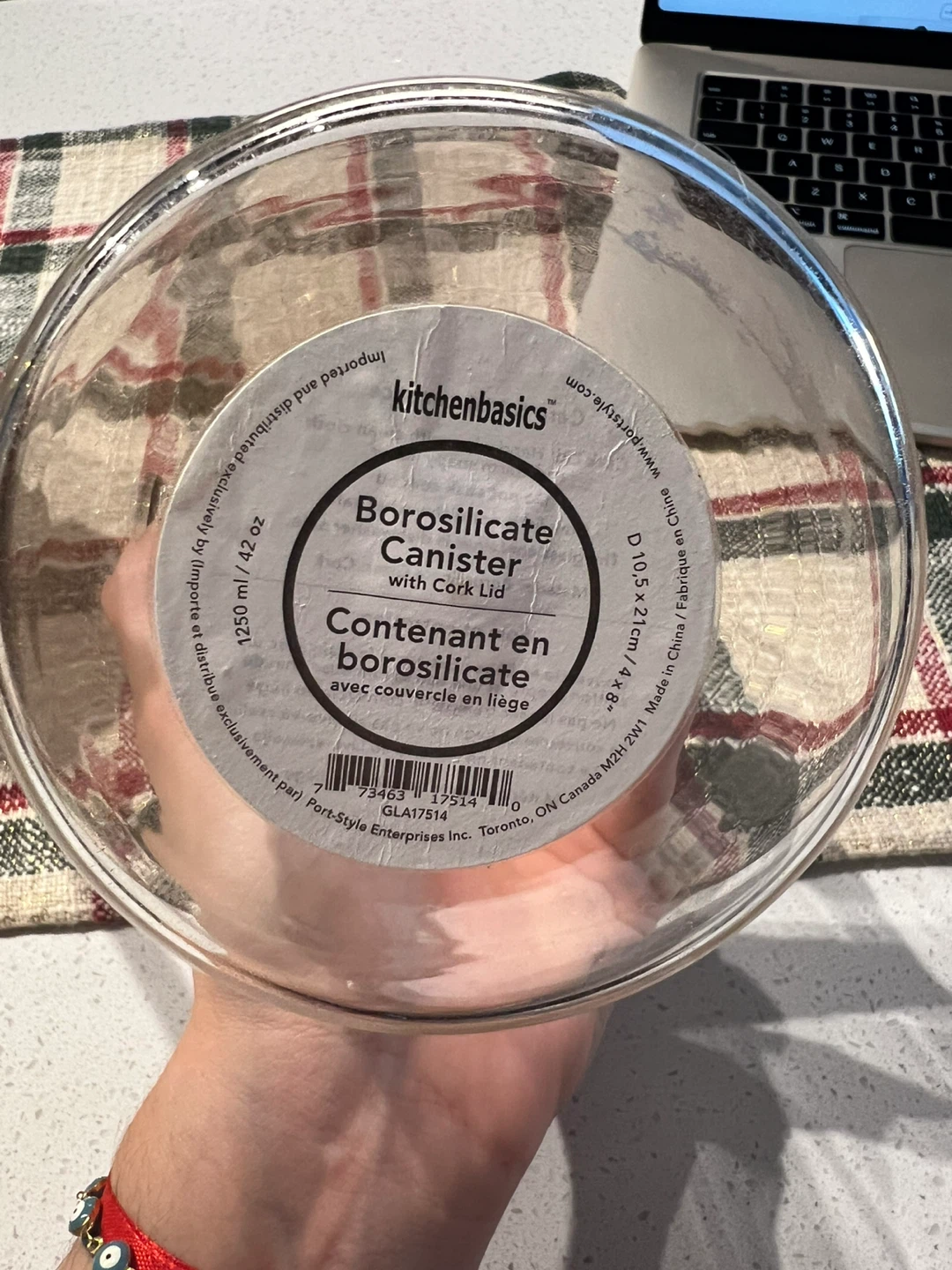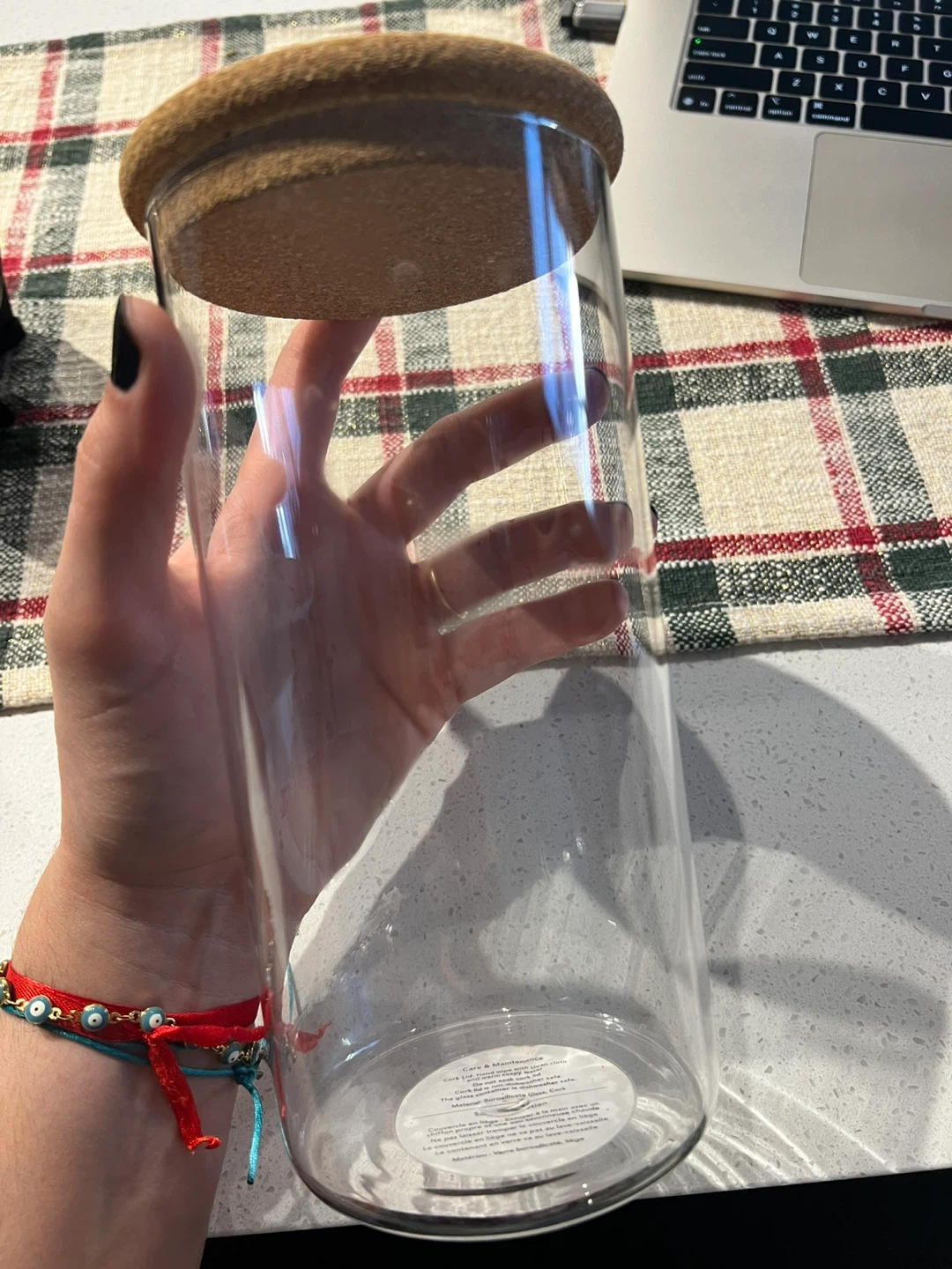 Selling a large glass food storage jar.