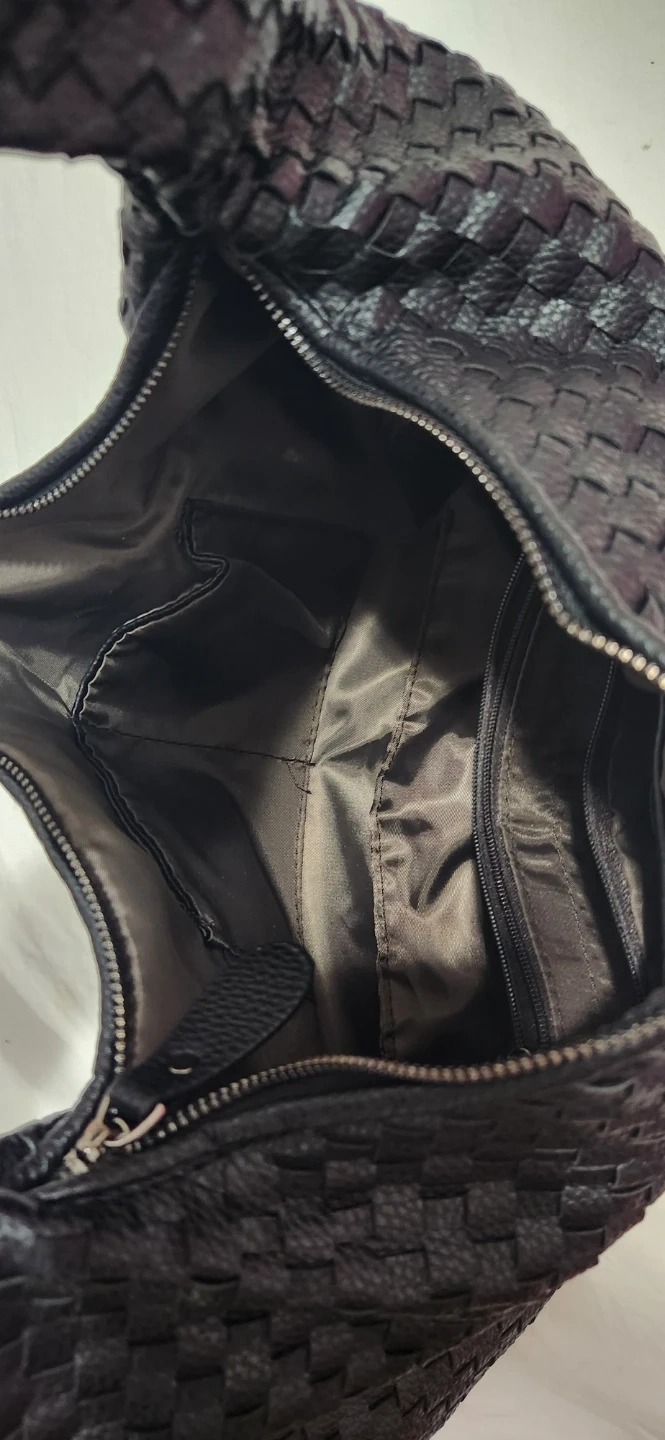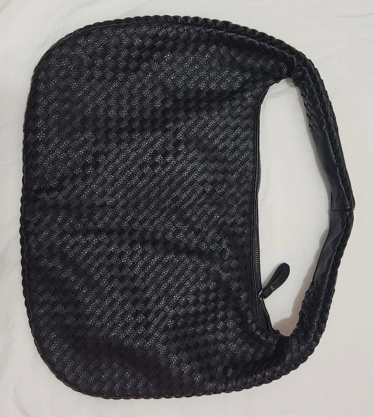 Selling a woven hobo bag. It's a stylish and versatile bag, perfect for everyday use. It features a woven design and a comfortable shoulder strap. The bag is in great condition and ready for a new owner! Dimensions are approximately 12.5 inches in length and 19 inches in width.