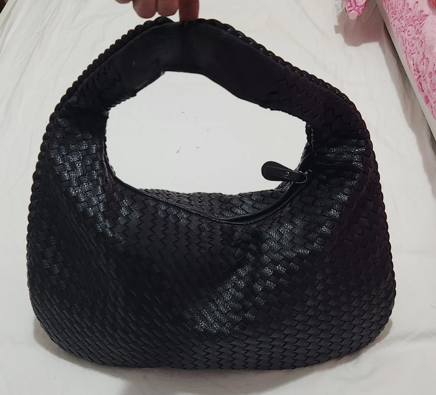 Selling a woven hobo bag. It's a stylish and versatile bag, perfect for everyday use. It features a woven design and a comfortable shoulder strap. The bag is in great condition and ready for a new owner! Dimensions are approximately 12.5 inches in length and 19 inches in width.