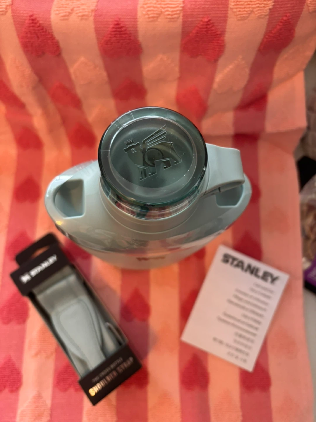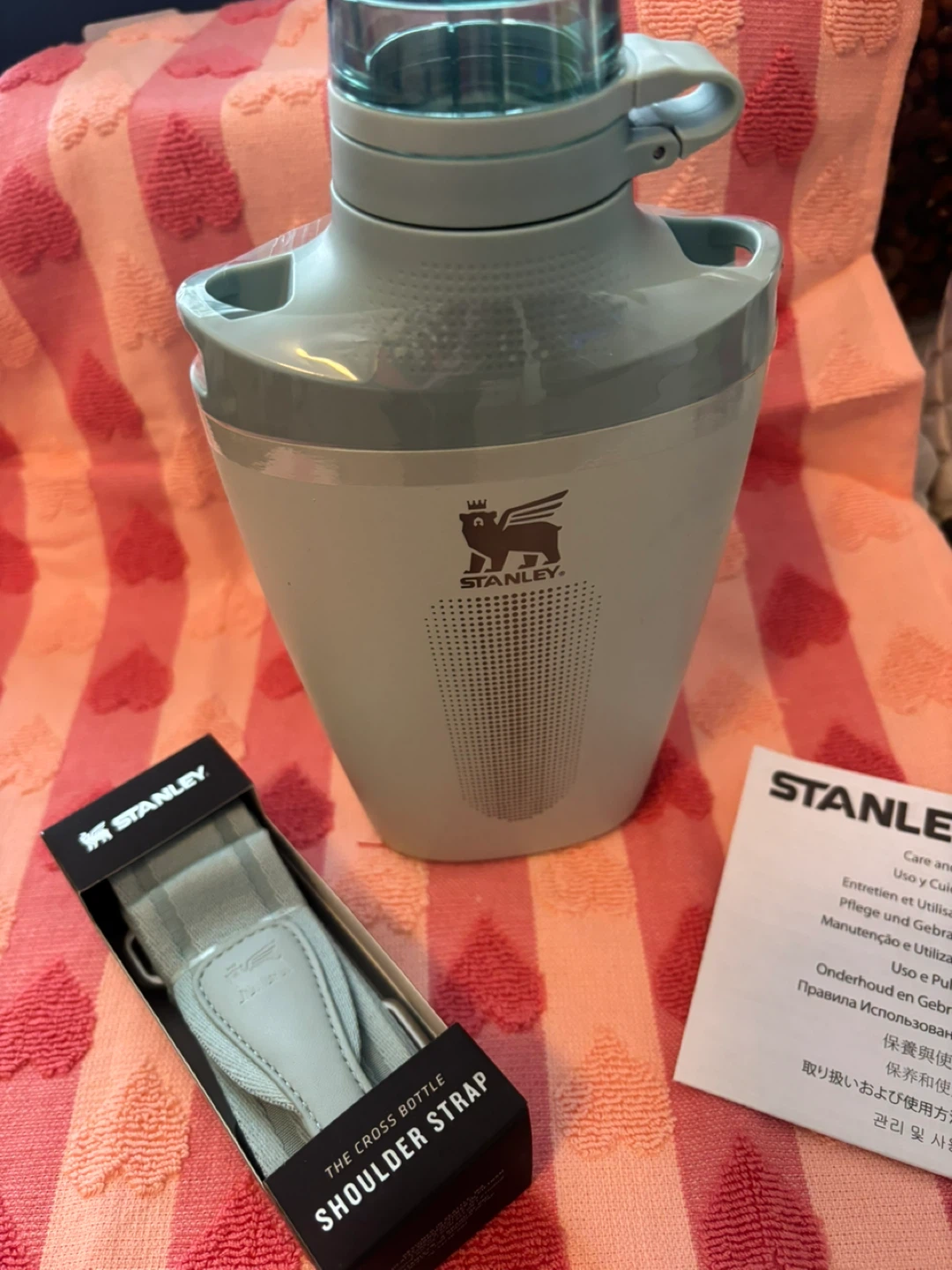 Selling a brand new Stanley Cross Bottle! It's in the original box and includes the shoulder strap and instructions. This bottle holds 23 oz (680 mL) and is perfect for staying hydrated on the go. It features wearable insulated hydration so you can keep your water cold for hours!