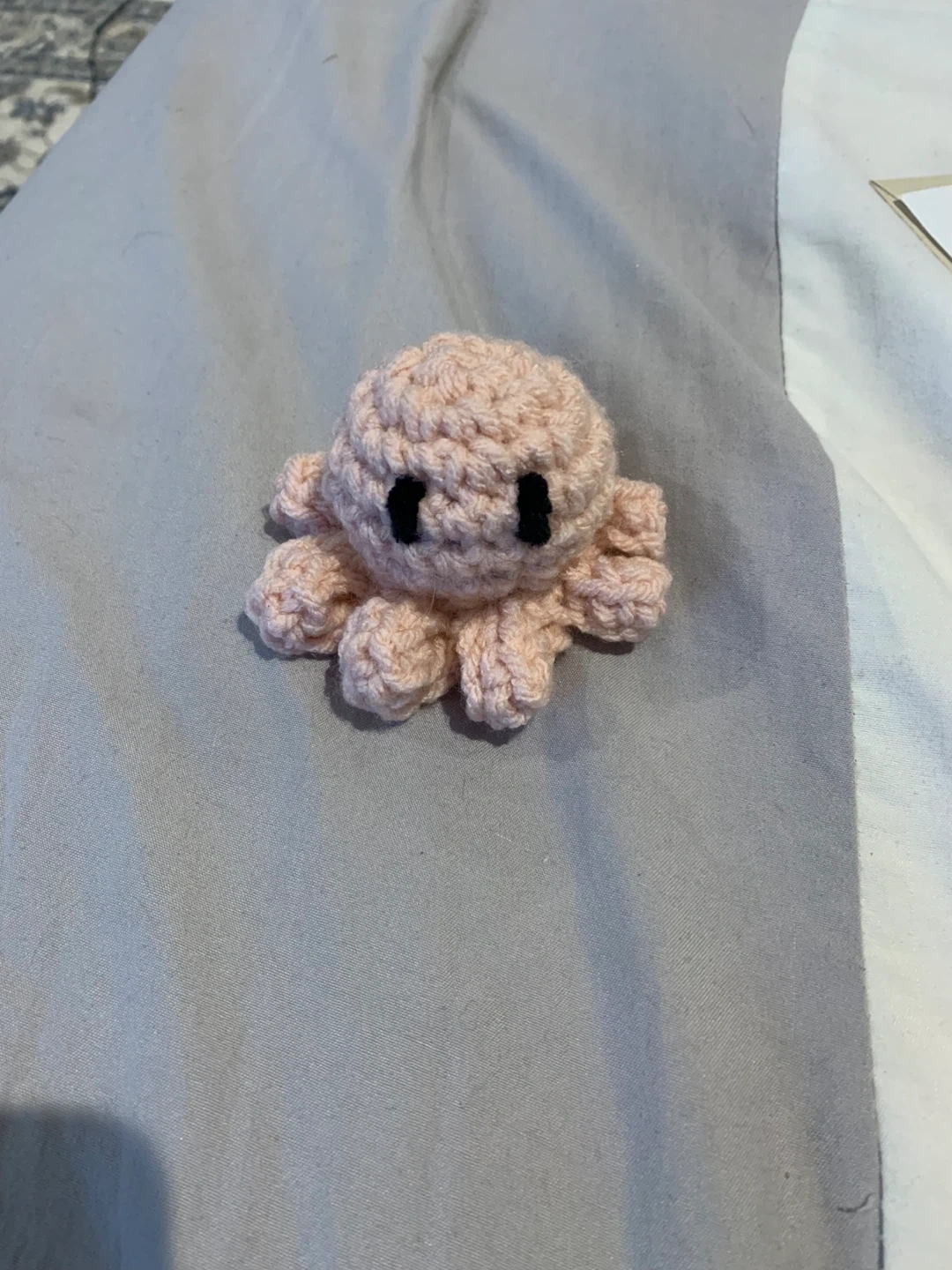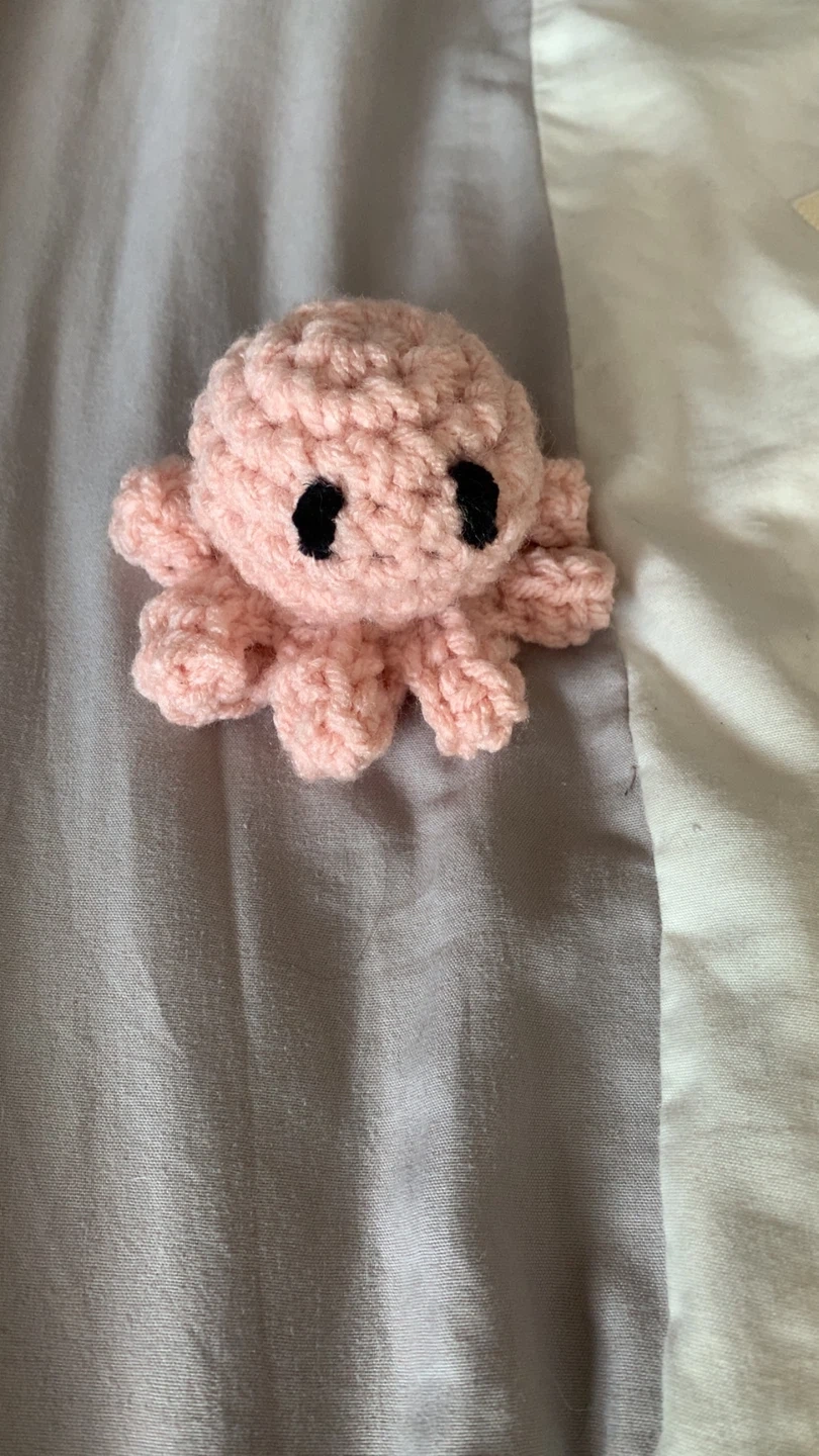 This is a cute, handmade crocheted octopus plushie! It's a light pink colour and would make a great little gift or desk buddy. It's in great condition and ready for a new home!