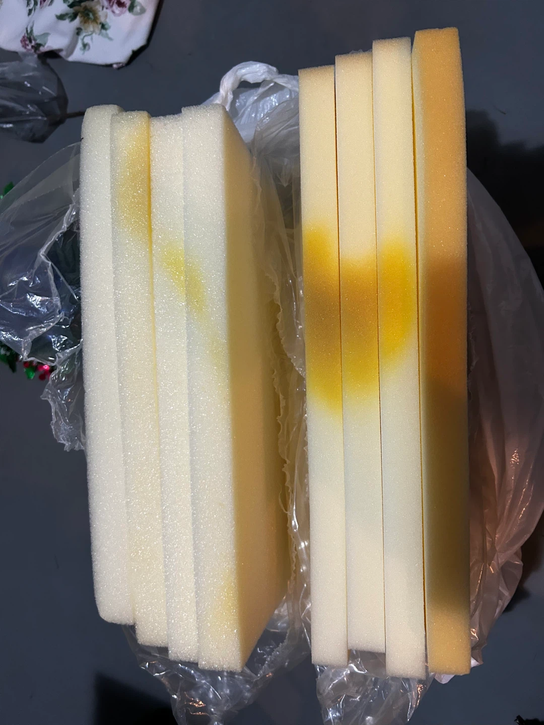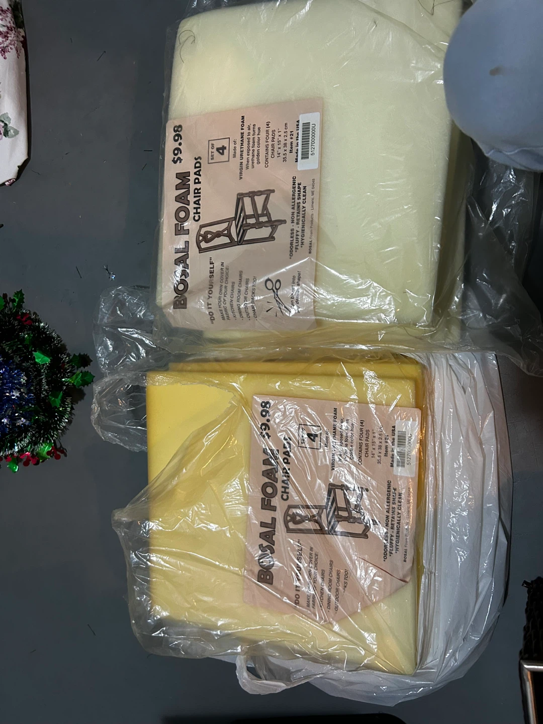 Bosal Foam chair pads. These are made of virgin urethane foam and are odourless, non-allergenic and 'fluffy'. Each pad measures 14" x 14" x 1" (35.5 x 35.5 x 2.5 cm). New though been in storage for some time.