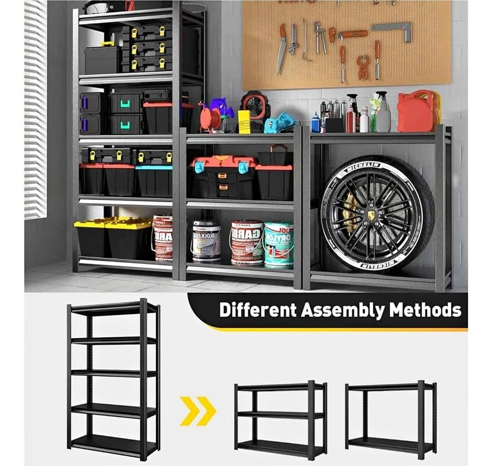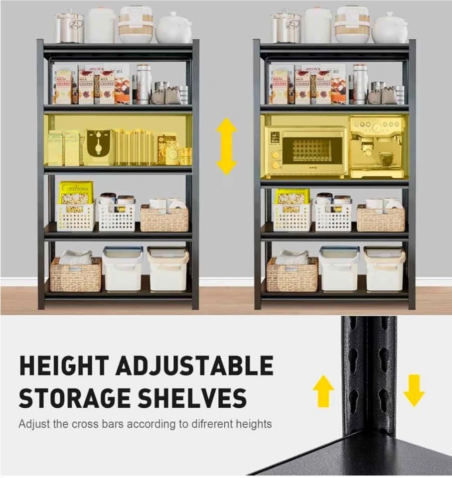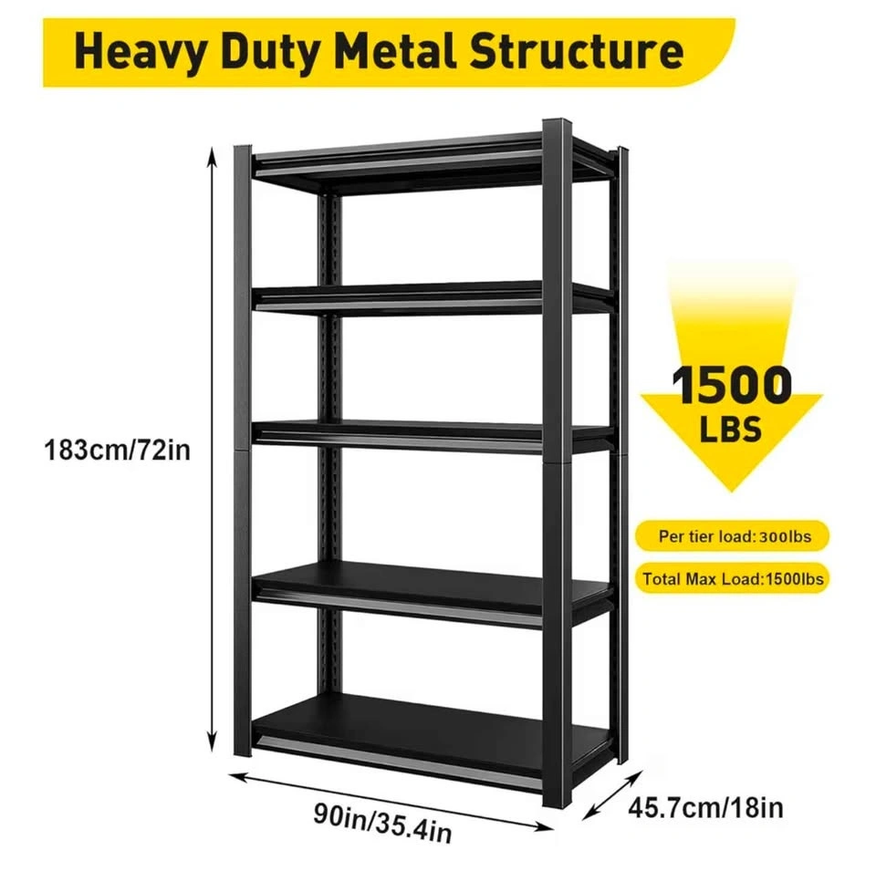 Heavy Duty Shelving Units Metal Storage Rack Garage Shelves for Tools and Kitchen Items Adjustable Shelf for Garage Warehouse Pantry Closet Kitchen (Black, 72 "H x 47 "W x 18" D).