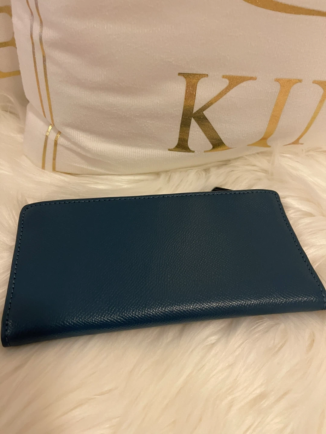 Like new : used only 3-5 times for only few hours .Constructed from Saffiano leather, this Jet Set wallet is designed in an understated, slim profile that opens to reveal a color-block interior with multiple pockets for storing your cards, cash and ID. It’s a perfect for carrying only the essentials when you need to travel light.