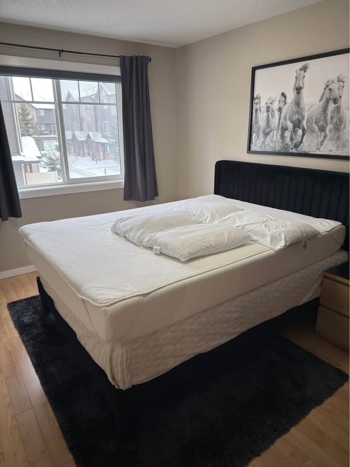 Queen Memory Foam Mattress + Protector & 4 Pillows