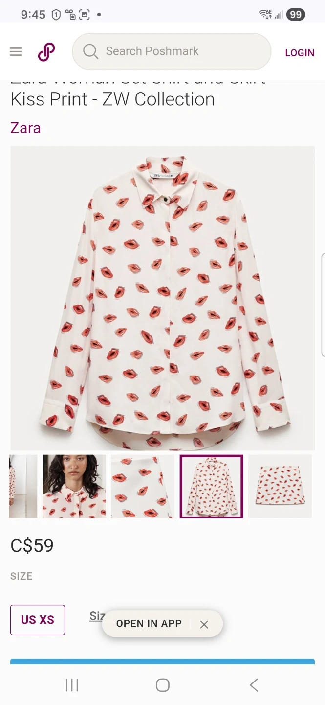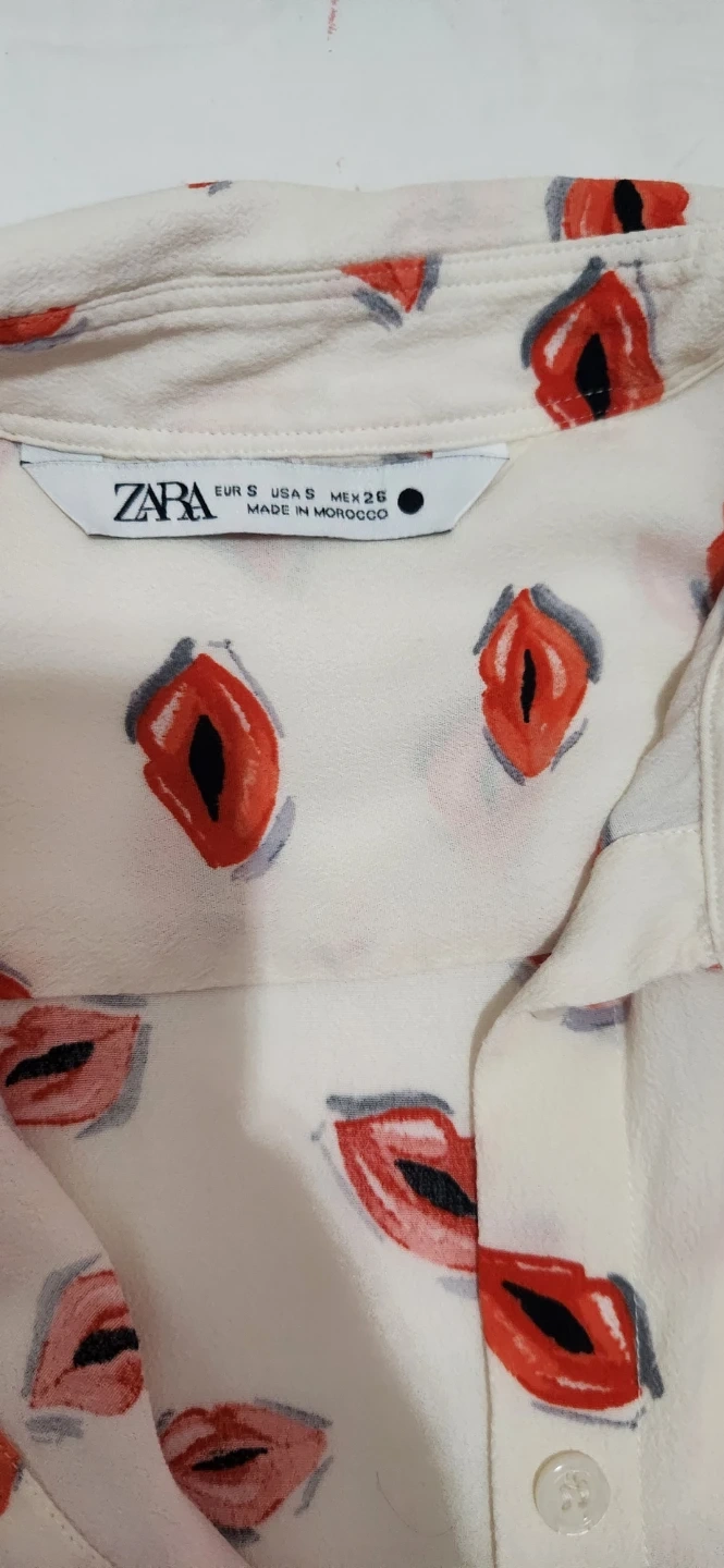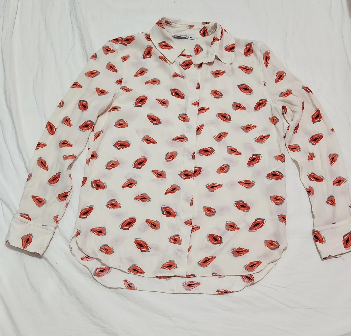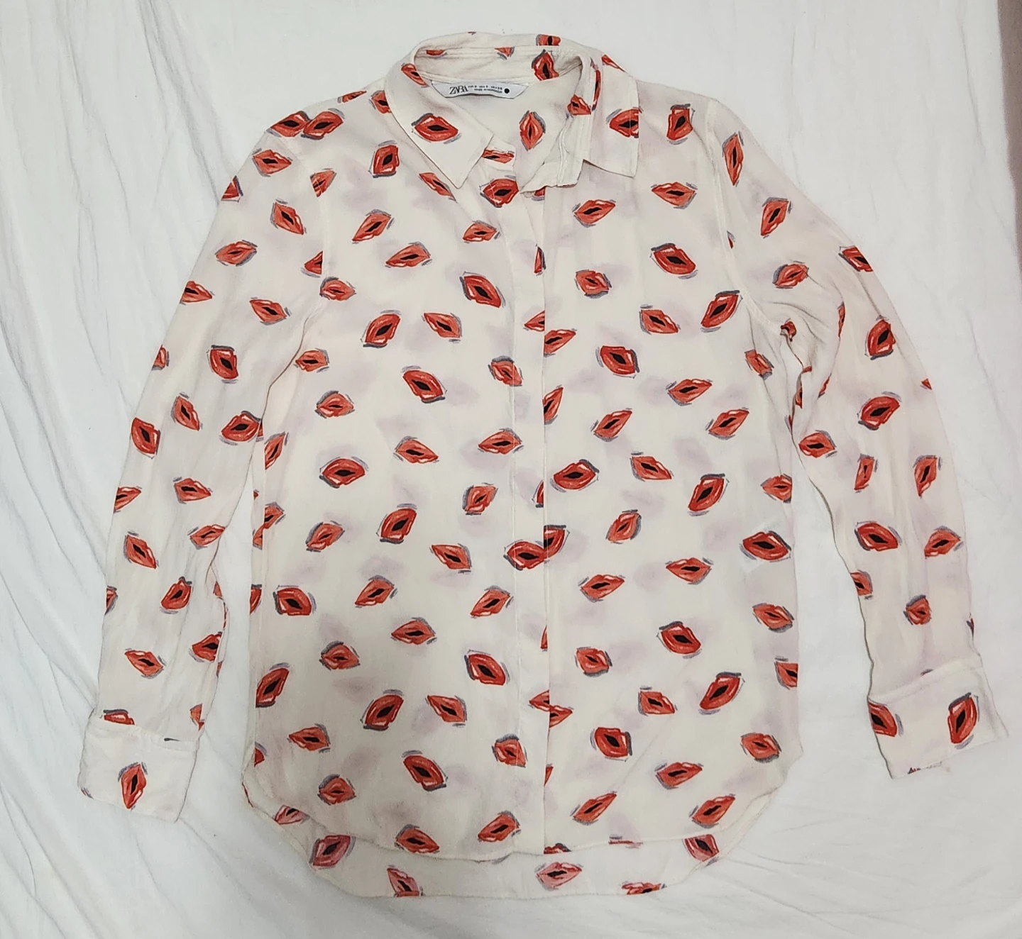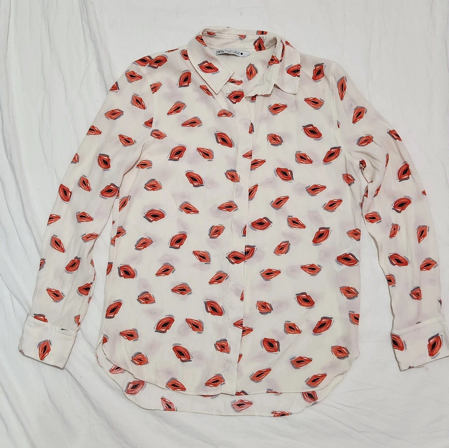 Zara blouse with a fun kiss print! It's a size small and in great condition. Perfect for adding a pop of personality to your wardrobe