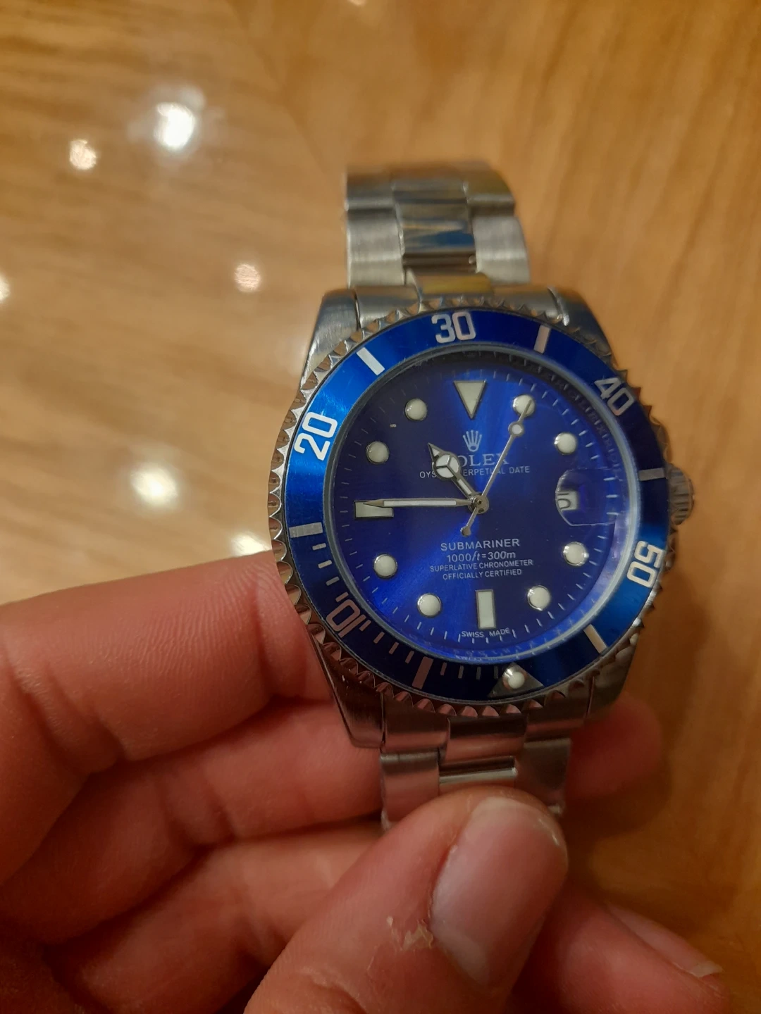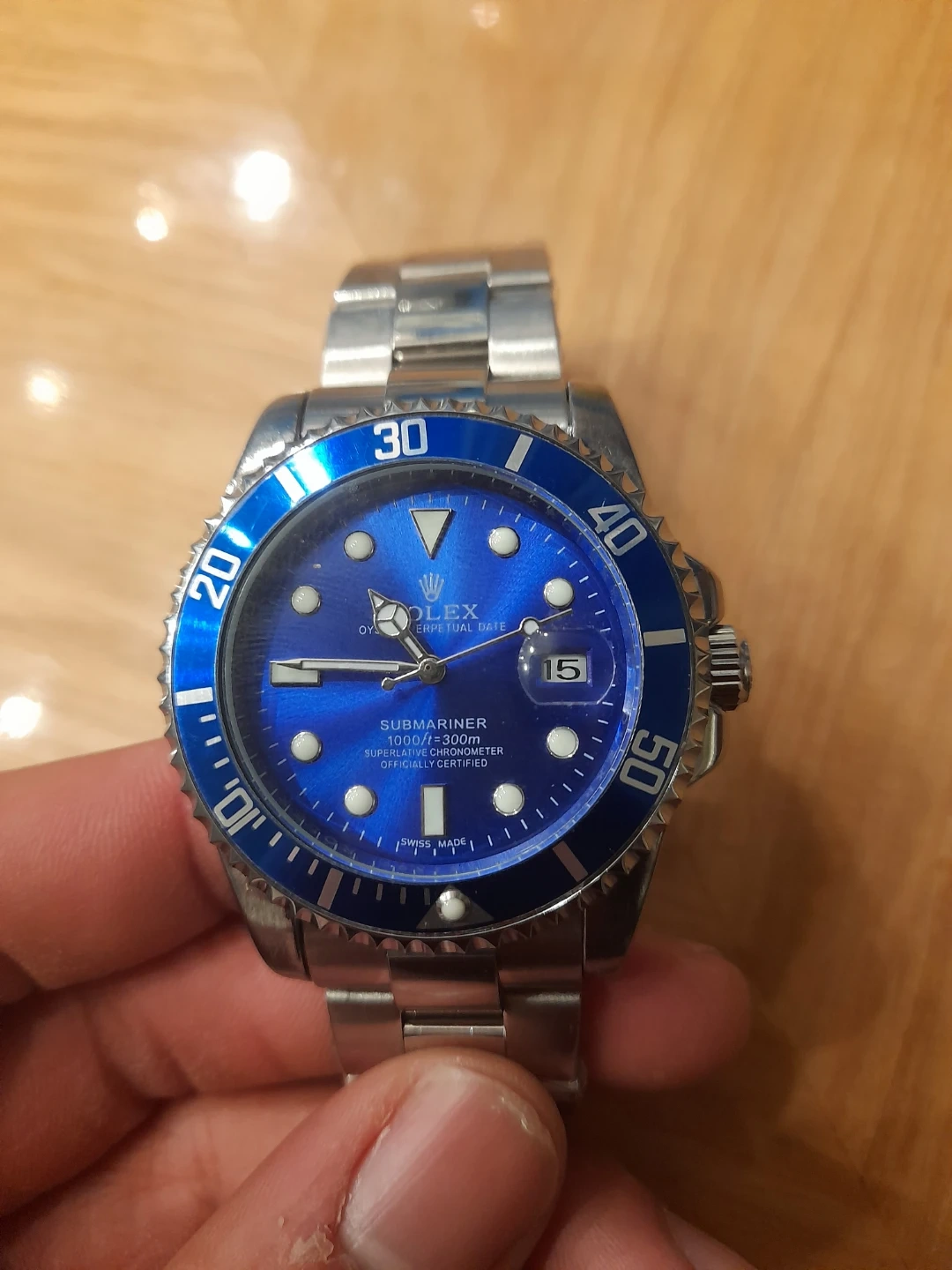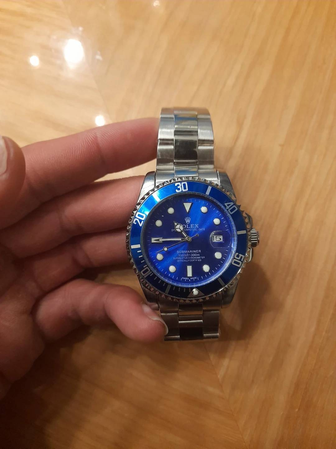 Selling a Submariner with a striking blue dial and stainless steel band. It's in good condition and ready for a new owner! This classic timepiece is a great addition to any collection